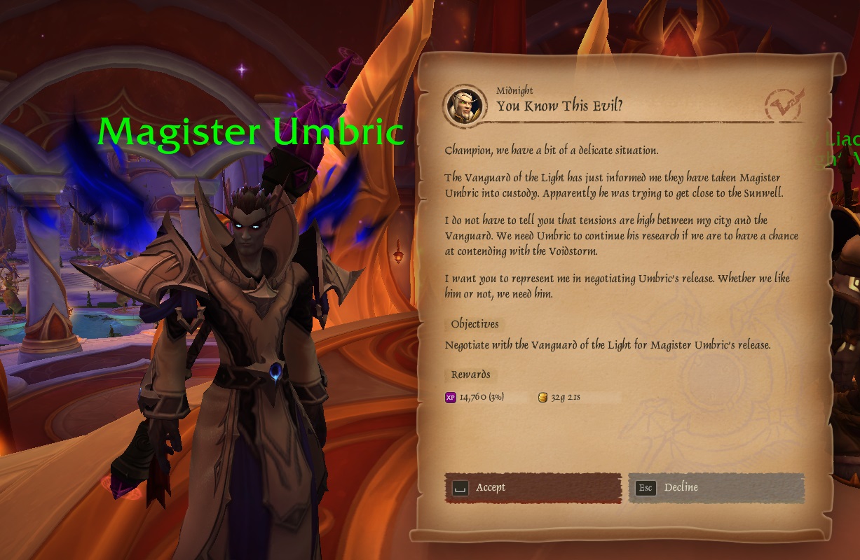 >>563535857intrigue is what I feel about most of Midnight stuff>void and light>Astalor>zul'jan and zul'jarra actual ending>lothraxion>xal'atath inside the sunwell>anguish looking like revendreth's anima but that's just RED being the most violent and brutal colour>how are the horde and alliance so slow I know they couldn't teleport before but still>sporefall implications?>n'zoth datamined model?>so much naga shit?? Azshara??>where's alleria and turalyon?>is the entire army of the light actually wiped out?>are orweyna and her green eyes gonna betray us at some point>y'sharaaj was pulled out too like you mentioned>xal'atath dagger wtfand more stuff I don't remember but should be considered too