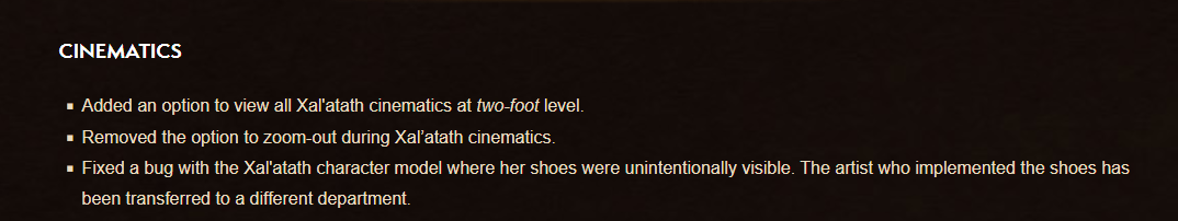 Xally was way cooler and had more personality when she was a vague, clearly threatening but ultimately just a side piece of the lore in the knife. WoW has this insane ability to make cool things but only if they're aesthetic/at the periphery of the setting's current focus. Ny'alotha, Xally, Zandalar, etc.