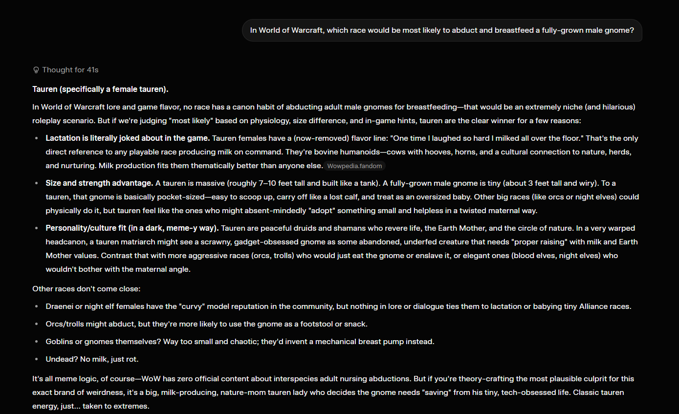 >>563534284Nobody knows how they came back. Nobody can even tell you how they haven't been wiped out after all this time and all of the people in power that would willingly and with aplomb do so.They were massacred in Classic, wiped again in Wrath, had their leadership turned undead and their monastery wiped out by a crazed member of their own order in Cata, were wiped out again and lost Whitemaine along with her powers of resurrection in Mists, and somehow they still had a presence in Legion. They appeared again in Dragonflight after all of this and were somehow able to occupy both Fenris Isle and Gilneas City, got destroyed again, somehow returned again in TWW trying to stir a rebellion in Arathi alongside the Defias and the Syndicate before again being left in ruins.Then they show up again in Midnight, once again populating the monastery in the heartlands of the Forsaken, the monastery which has been sacked and cleared out entirely no less than four times by now, trying to ambush Faol during his talk with Liadrin.How do they repopulate? Where do they get their food, source their equipment, where do they even make their home now that all of their former territory is the domain either of the Argent Crusade, the Ebon Blade, or the Forsaken? How do they maneuver their forces en masse through Forsaken territory, across Forsaken and Gilnean borders, without anybody anywhere being wise to their coming and going?It just doesn't make any sense. In a game of rock, paper, scissors, they're fucking mushrooms.