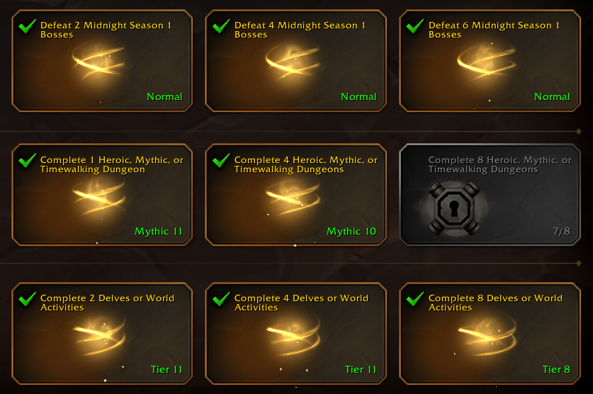 Corrected list>WoWVanillaTBCWotLK>WoW2CataMoP>WoW3WoDLegion>WoW4BfASL>beach episodeDF>Wow 5TWWMidnightTLTThoughts?