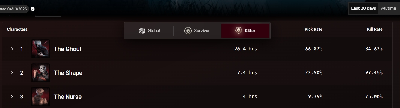 >>563552803Correct.He's also #6 over all in the Nightlight stats as well, so it's not the usual BHVR special as far as reporting stats go.