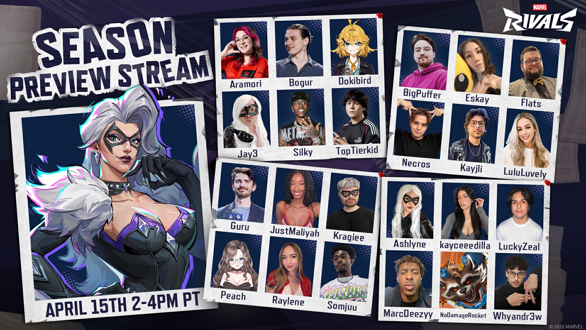 Chilling pussy Edition>NewsWhite Fox Character Reveal: https://youtu.be/esb1CBW2WK8Lower Manhattan Map Reveal: https://youtu.be/ChBE64P3AmsHospitality 101 Event: https://x.com/i/status/2041591841058124198Version 20260326 Balance Post: https://www.marvelrivals.com/balancepost/20260325/41667_1292877.htmlDual Life of Peter Parker event: https://x.com/i/status/2034336534070272258Season 7 Battle Pass: The Tablet of Life and Time Trailer: https://youtu.be/i4UyWO2lvfEDev Vision Vol. 15: https://youtu.be/fu8_U1mWGZASeason 7: The Hunt Is On Official Trailer: https://youtu.be/HdG4elTlDv8>StoreIron Fist’s Lin Shao: The Knockout and Jeff The Landshark’s Maid to Chomp skins: https://x.com/i/status/2041169240045097174Cloak & Dagger's Daring Duo and Captain America's Brett Hendrick: The Star skins: https://x.com/i/status/2036118339370586501Punisher's Marauder Marksman: https://x.com/i/status/2033996794342838398Ultron's Odinforce Ultron skin: https://x.com/i/status/2033981697981546574White Fox's Yoon Ji-woo: The Leader skin: https://x.com/i/status/2033966601918181456The Thing's Fear Itself and Daredevil's Born Again Season 2 skins: https://x.com/i/status/2031407298669666551Psylocke's Once-Captive Corsair & Captain America's Cursed Captain skins: https://x.com/i/status/2029738798007886162Phoenix's Seat of Spring and Moon Knight's Eclipse Knight skins: https://x.com/i/status/2023804865076490548Emma Frost's Black Queen of the Marauders and Iron Man's Iron Mariner skins: https://x.com/i/status/2023427159608443189>LinksHero Hot List: https://marvelrivals.com/heroes_data/Guides & News: https://marvelrivals.gg/Tracker Resources: https://rivalstracker.comMobalytics Page: https://mobalytics.gg/marvel-rivalsFANDOM Wiki: https://marvelrivals.fandom.com/Previously on /mrg/: >>563410538
