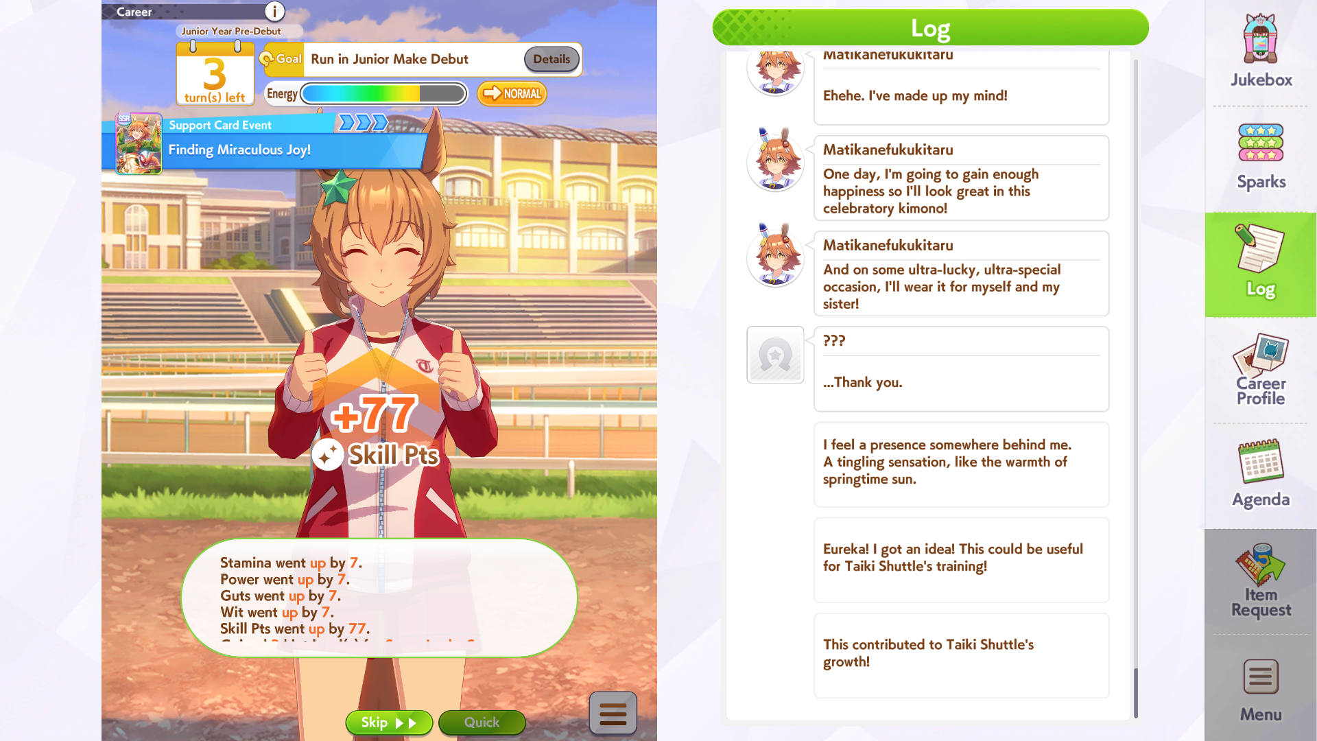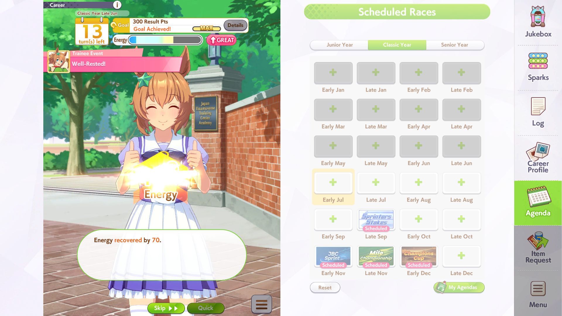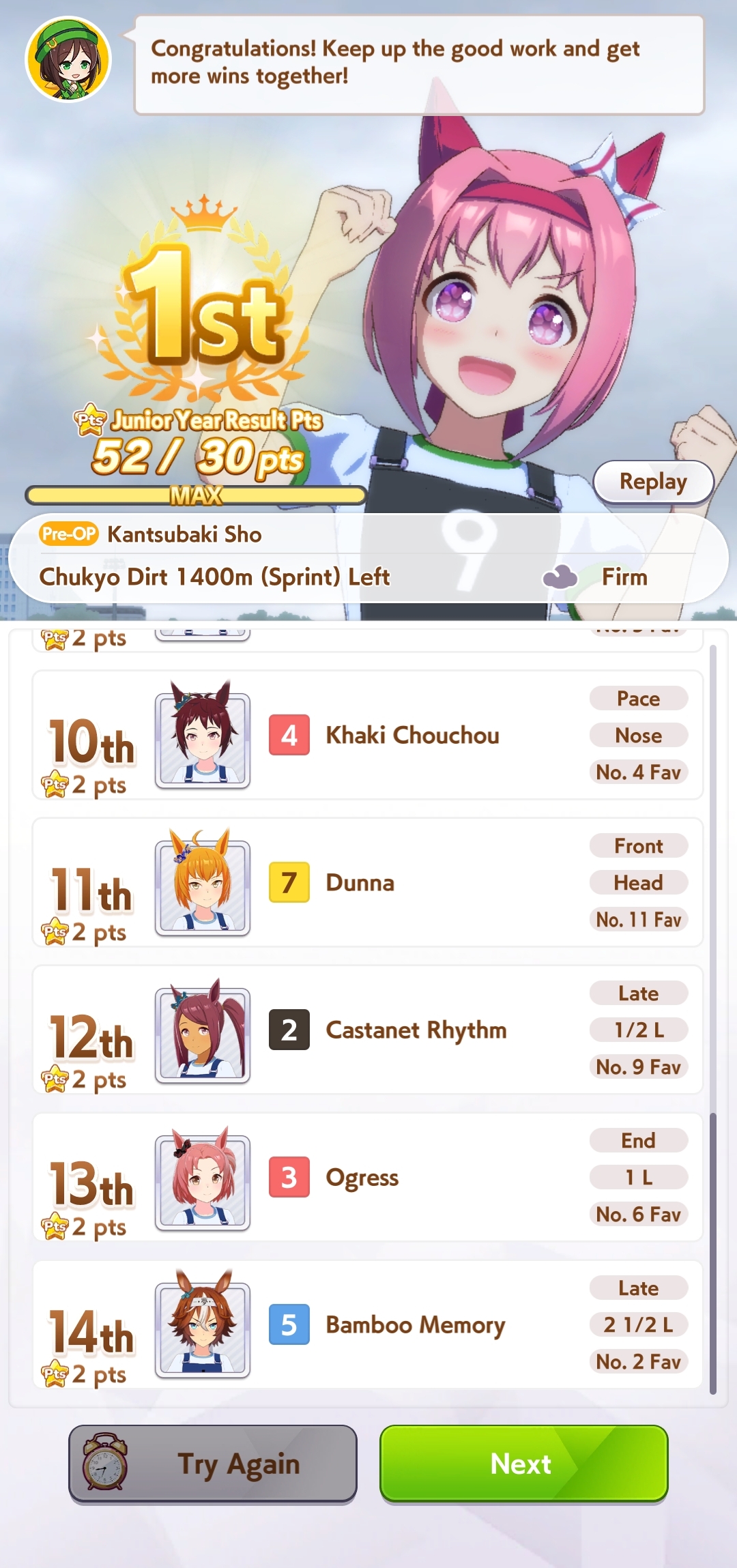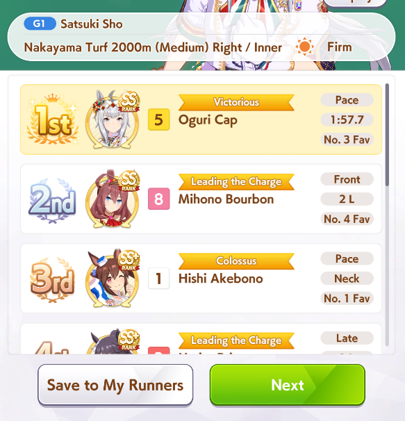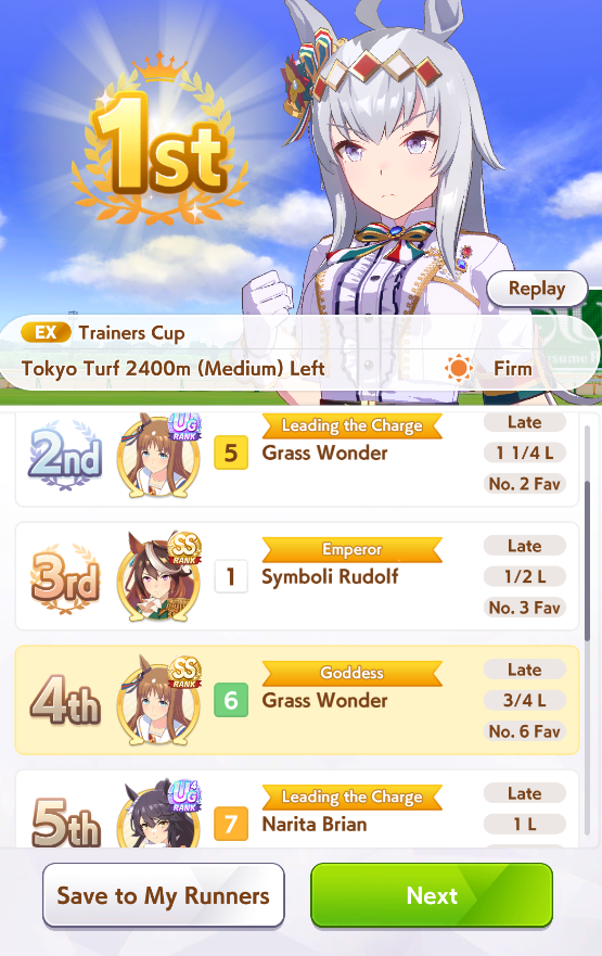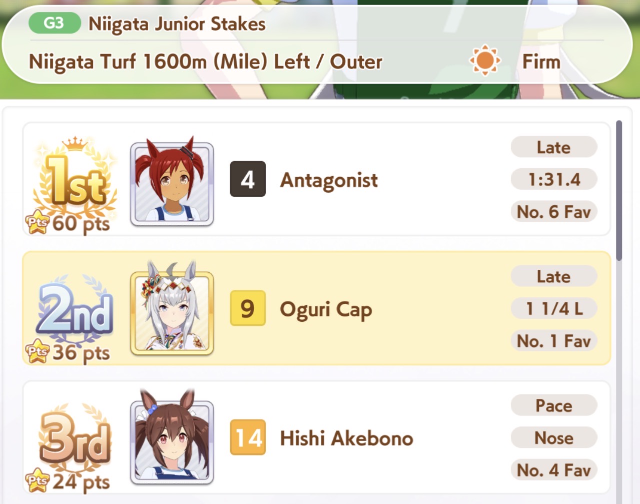 >losing races left and right>not a single event finishesGreat game, glad i wasted an hour, you're welcome danchou for all the fan bonuses i got