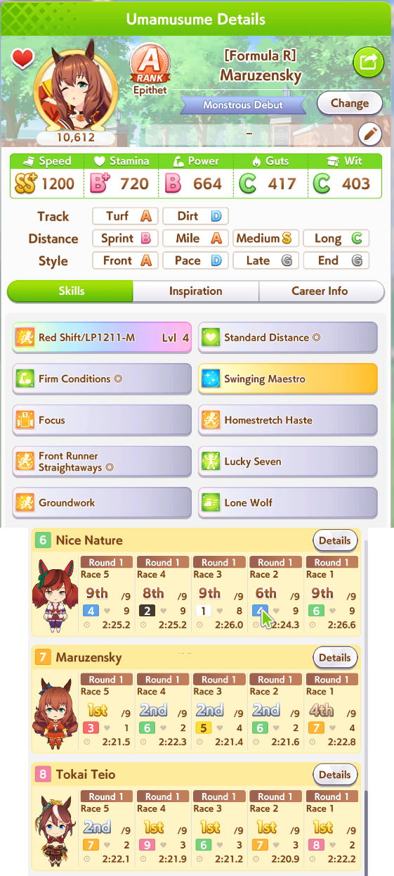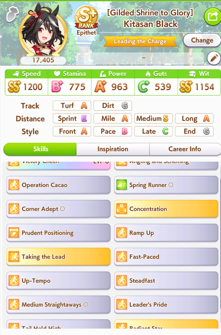 >>563572023you need to kick oguri out of her u=ma2 positioning. some retards are also bringing stamina to spare/preferred position and triple fronts can fuck with it