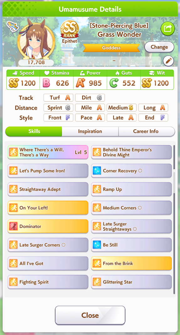 >>563572097I mean it doesn't get much better than that for lates aside from some more green speed skills.If she doesn't get left behind too much before late race then she'll always be able to compete.