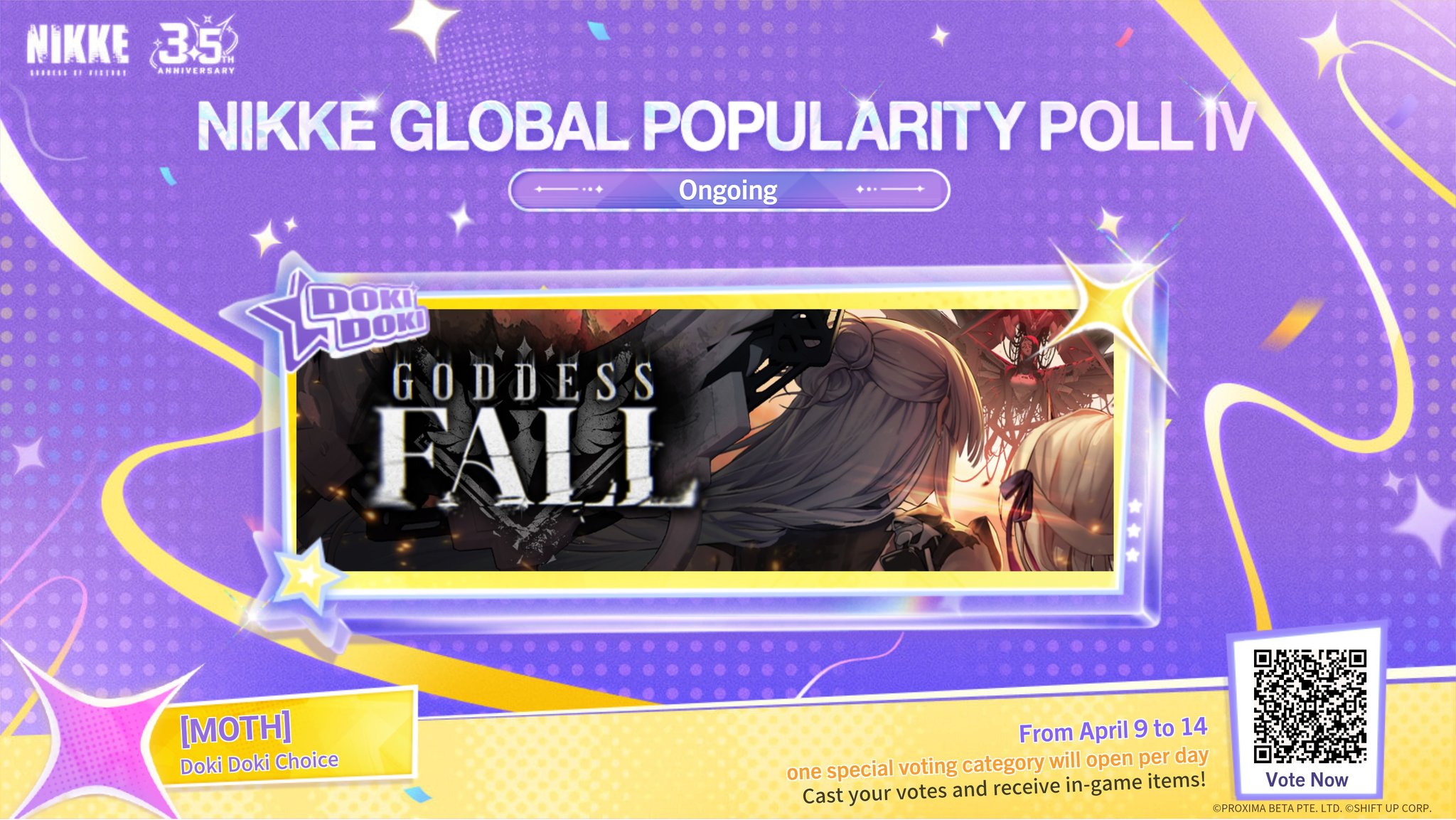 >3.5th Anniversary Popularity Poll - April 8 ~ April 14https://nikke-en.com/events/nikkevote3.5th/>Download - Android/iOS/PChttps://nikke-en.com/index.html>General Info/FAQ for New Playershttps://rentry.org/NikkeInfo>Additional Linkshttps://rentry.org/nikghomeALL DATES/TIMES LISTED BELOW ARE UTC+9 (KOREA TIME)>Update on April 9https://nikke-en.com/newsdetail.html?content_id=d31b0e9ba5861a4876aae35a5887fd39e511>Developer's Note: March 2026https://nikke-en.com/newsdetail.html?content_id=835e7b26a7fafa4df8ab738a81b2b9f6aa3a>Current EventsGOOD WORLD - April 9 ~ April 22Union Raid - April 10 ~ April 16>Upcoming EventsTBA>Current Special RecruitsSnow Crane - April 9 ~ April 22>Upcoming Special RecruitsTBA>Current Costume Passes(Rerun) Drake: Villain Racer [Costume Gacha] - April 9 ~ April 22(Rerun) Liter: Cute Sunflower [Cash Shop] - April 9 ~ April 22(Rerun) Exia: Gamer [Cash Shop] - April 9 ~ April 22(Rerun) Biscuit: Spring Puppy [Cash Shop] - April 9 ~ April 22Viper: Punky Street [Event Pass/Razer Collab] - March 26 ~ April 16Sora: Spring Flight [Mission Pass] - April 1 ~ April 30Clay: Cheer Up Training [Login Event] - April 2 ~ April 30>Upcoming Costume PassesTBA>CodesMILLIONCOMMANDERS (04/30/2026)Previous: >>563541383