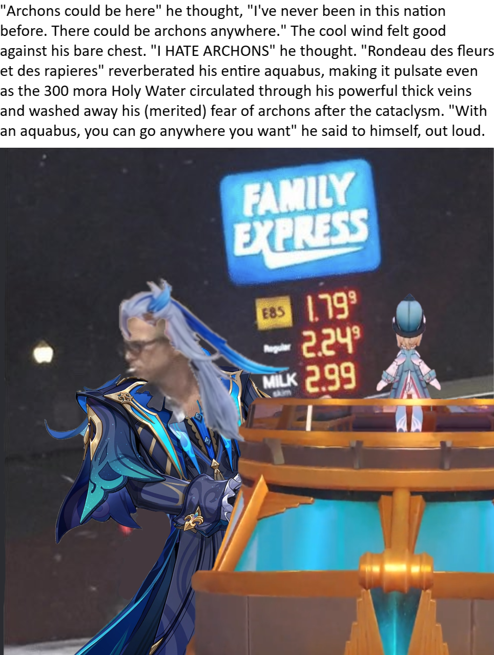 >>563596540>admit that I ignored his thigh high boots and that was one of my many mistakes, but I was willing to ignore it because of his long white hair and dragon identity.The average anon found that gay too, and combined all of his feature.Unless you were playing while blind or ignored the various shitposts about his looks, I'm starting to question your IQ>2023That's literally the 2nd half of sumeru from Al's release onwards, kaveh got a bunch of fujobait during the tail end of it when we kept talking about worms.