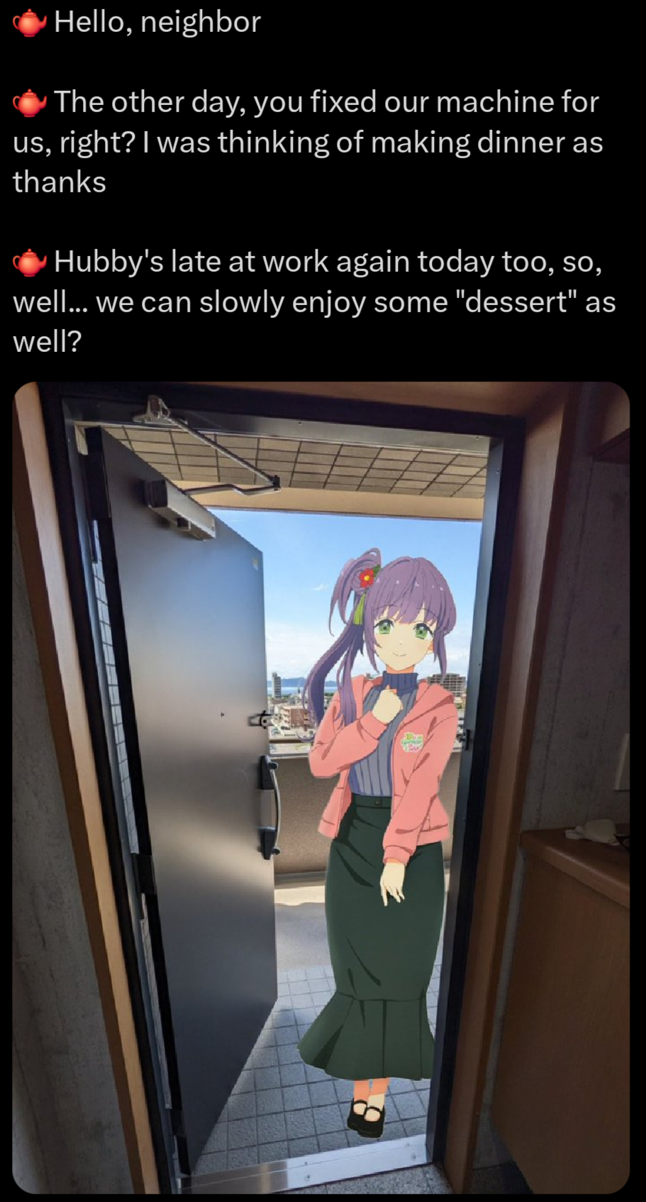 This is what Chika's dad sees every night.