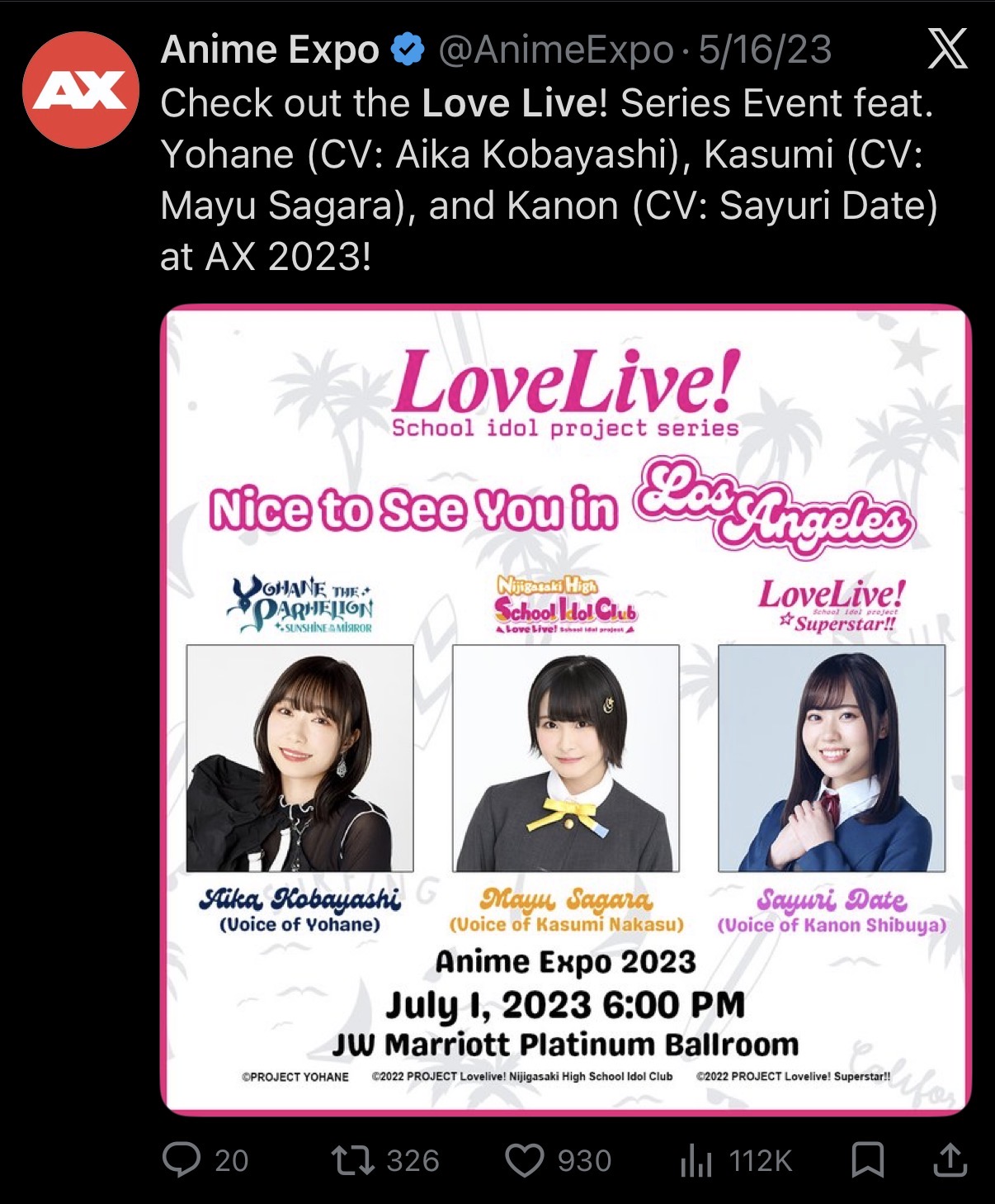 another anime expo, another year of 0 love live. This con used to put us on the spotlight regularly now its all gone, oh well.
