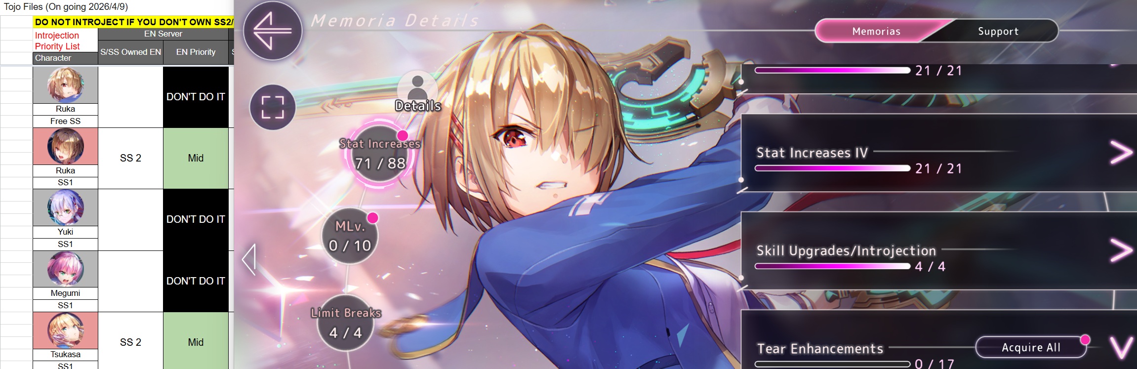 >>564162794>Diva ruka EX>SS1 introject>Luna>Sharpeye Stance>Noble Edge (Devastation)>Master passive>Skill orb 1&2I'm using all slots on Ruka...there's other characters I have a lot of skills on too, but some can get away with just 4 for sure. I need to get an extra skill slot for Megumi to fit in her EX + master + passive and still have room for her debuffs