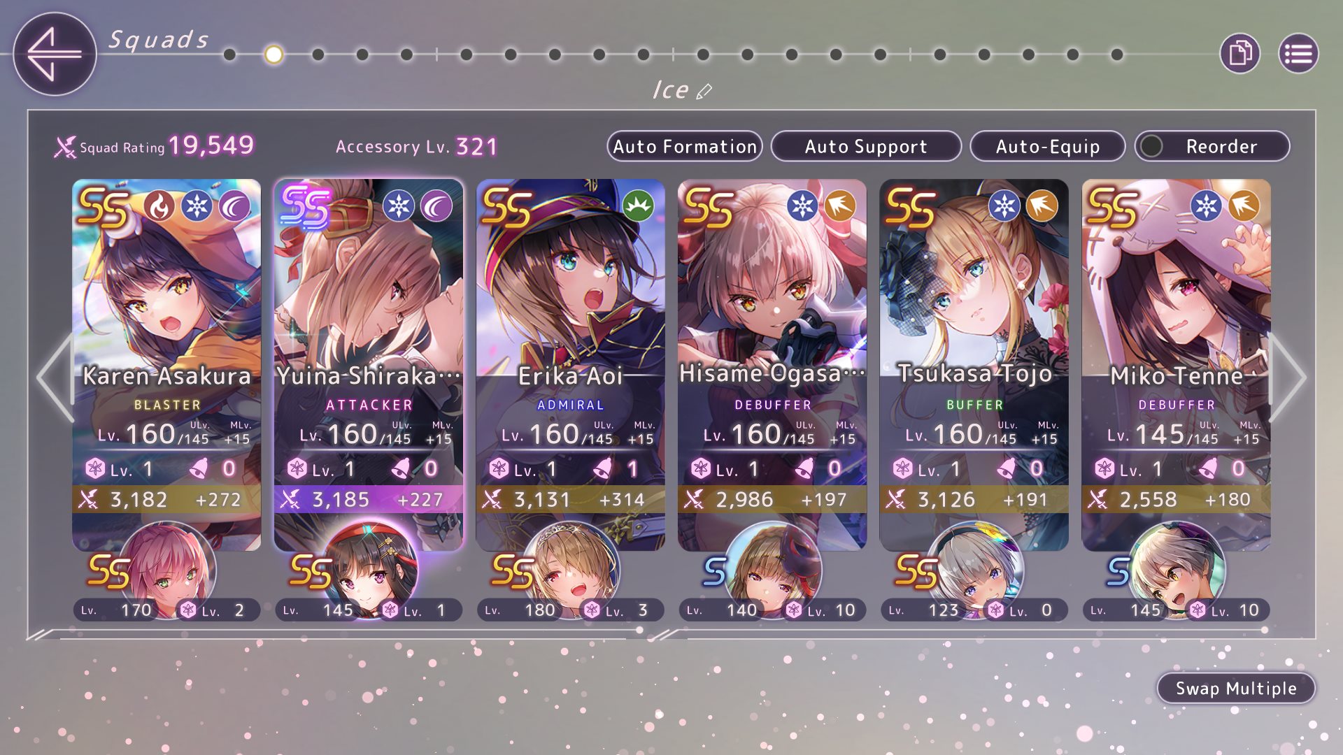 >>564148649Megumi SS4 actually has a much better field than Iroha SS3 (95% vs 65%) but Iroha SS3 also has access to Thunder Attack Up and Thunder Crit DMG Up, making her the TojoSS5 of Thunder.Megumi has a couple of nice tools herself though. Psychic Charge spam on Ruka Diva means you dont need to manage SP on Ruka anymore. Access to Fragile, Defense Down and Thunder Defense Down means that Sharo doesnt need to do all of that herself (spam drive orbs on her free turns). Sharo also gets access to the turn based skill attack up buff if you selected Sharo wedding.If you have Nanami she can also provide you the Thunder Crit up Buff and Skill Attack up. A Nanami alternative is just Iroha SS2 in Thunder with Megumi setting the field so Iroha provides Thunder Crit DMG buffs while also providing OD and SP in the opening with her SS1 EX to SS2 EX combo. Iroha SS3 is very strong but unlike TojoSS5, Iroha gets kicked out of the Admiral Thunder Team because Nanami has all of her buffs (and Megumtama has the field), so I'm personally just going to stick with Megumi for now.