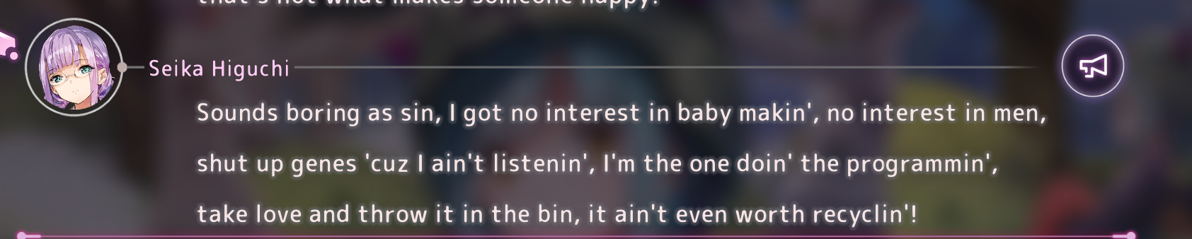>hmmm i should i work on doing the socializations i missed >have to skip a bunch of dialogue, run over to them, start the socialization, then skip through a bunch more dialogue to get to the bath scenewish they'd let me just skip straight to the socialization already