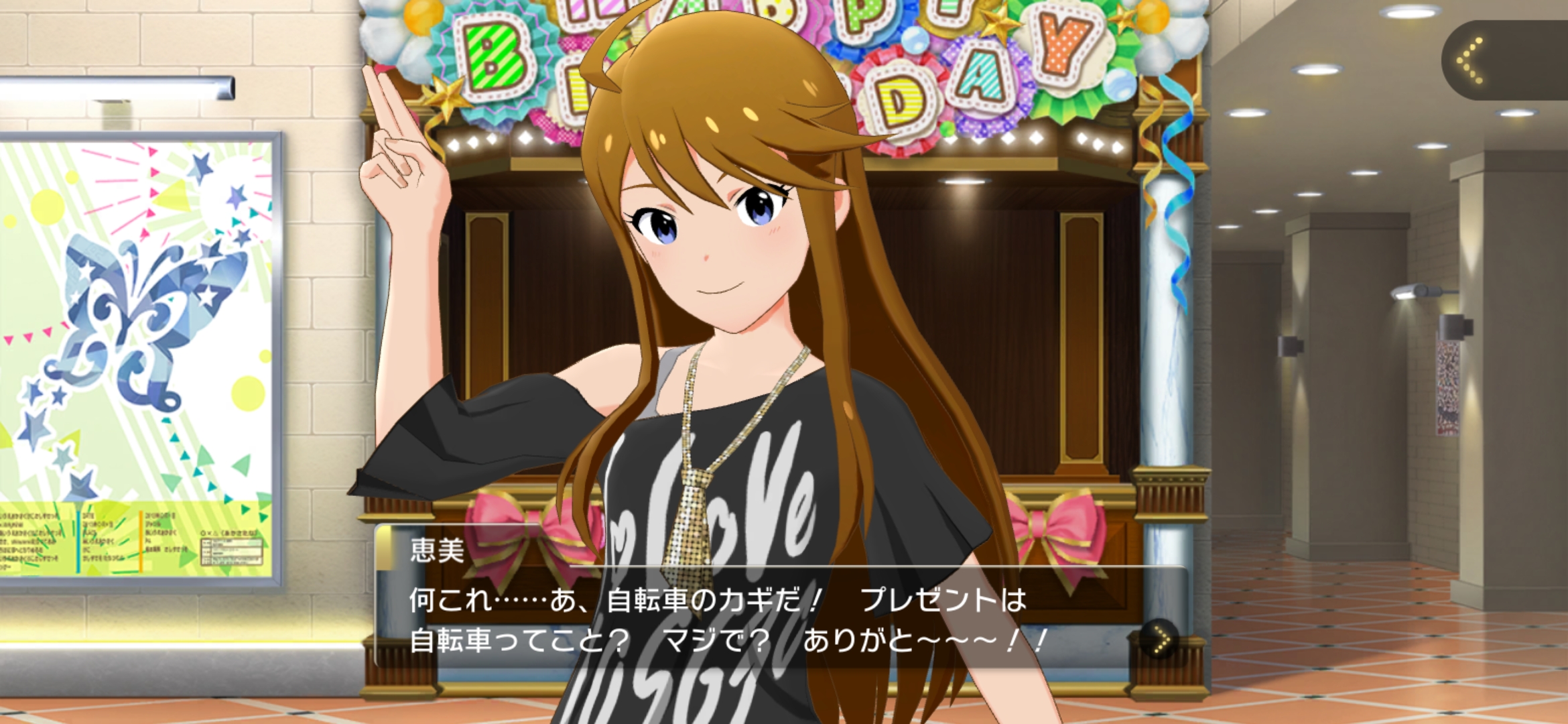 Did you know that Megumi cat laughs on flicks using her SE pack?Megumi's Disco Fever Birthday 2026Kana - Megumi-san, congratulations! Let's have a happy day~!Julia - See ya at the family restaurant.Arisa (to above) - I'll go take the seats early~!Takane - It is a good day indeed.Mizuki - The smile bar has unlimited refills. ...Grin.Minako and Elena were at her party. Elena is glad that they became friends and hopes it stays that way. Minako says it's always fun when Megumi is around and plans to return the favor in a super sized way today. Megumi thanks them and says she loves them all.P gives her a key for a new bicycle so she can arrive in style. They're out enjoying nature after some cycling, with Megumi enjoying her new bike. P as usual is completely exhausted, but thinks it would be good to do some bicycling once in a while himself. Megumi agrees, and also this is a way to have P all to herself for a bit.https://x.com/imasml_theater/status/2044068157132841390Gift Options - Wristwatch or Eyelash Curlerhttps://x.com/imasml_theater/status/2044068912631849303