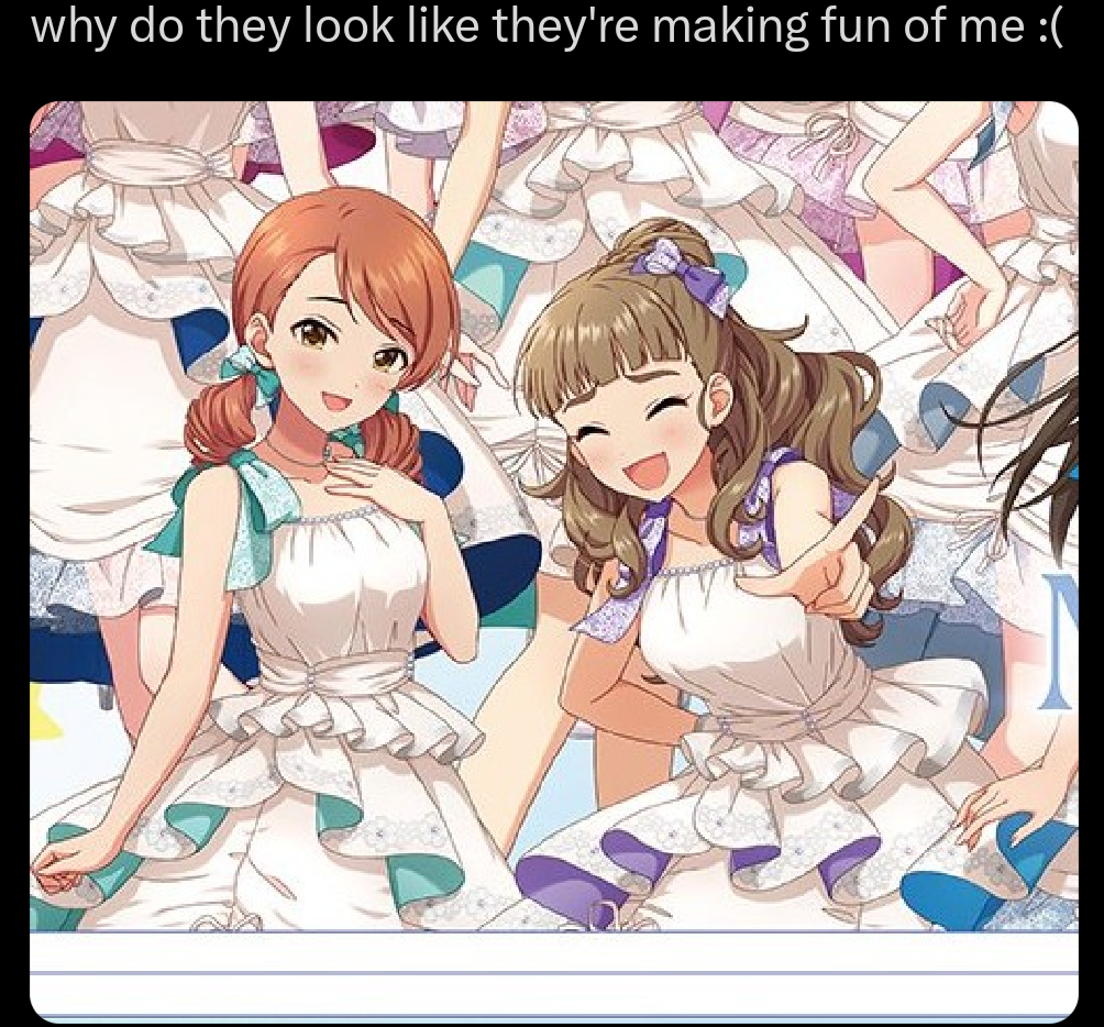 iDOLM@STER ThreadPrevious iM@S Thread: >>563535148Official website: idolmaster-official.jpJapanese news: imasnews765.comEnglish wiki: project-imas.wikiAPKs: apk.ksmz.moeOld archive of materials: sites.google.com/view/yukipobackupOld FAQ + Resource Links: pastebin.com/icRtaLvvMaterial translations + Music downloads: pastebin.com/DebHdukECharacter birthdays: pastebin.com/cLdezeDuNext thread OP: pastebin.com/A5UGxTuBHelpful Links: pastebin.com/Z70CGAsN>Event/Gacha Dates (Apr 13th): >>563500832 >>563500889- Previous News: >>563535175 >>563535209TUESDAY:Apr 14th, 7PM JST: TOURS Update 5 stream: youtu.be/SzrN3oFK9YQ >>561560148 >>563045007Apr 14th, 8:30PM JST: Cinderella Girls 15th Anniversary Election discussion with AP Kassy: youtu.be/tnEMENz0fOgWEDNESDAY:Apr 15th, 8AM JST: VL Cosmo's Morning Stream: youtu.be/nOUTQ1VsH4EApr 15th, 8PM JST: VL Cosmo plays R.E.P.O. Collab with Lain Paterson, Maria Marionette, Nesu (Real Akiba Boyz) and Hebiyoi Tier: youtu.be/cE--i0Z_4eEApr 15th: Gakuen China's "Tokimeki no Solfège" MVApr 15th to Apr 17th: VL at vortex CORE-Gen2: >>560322959