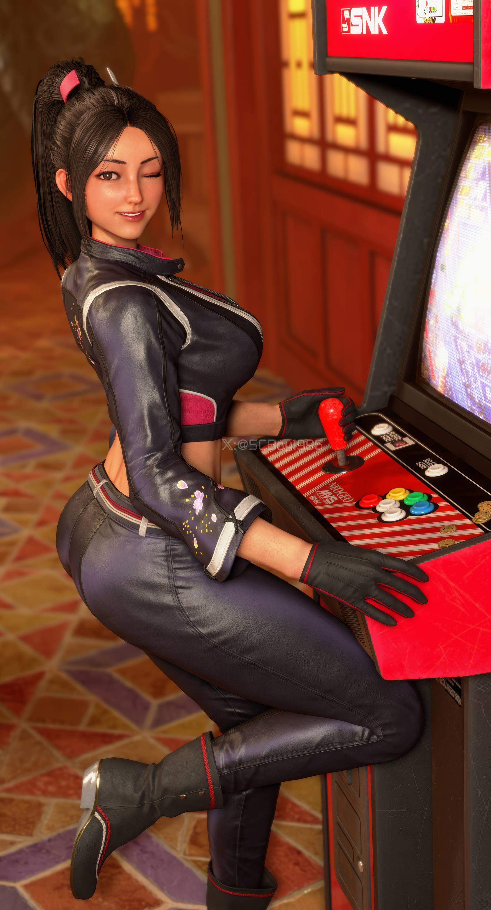 I wonder how often she pokes herself in the thigh with those bracers.