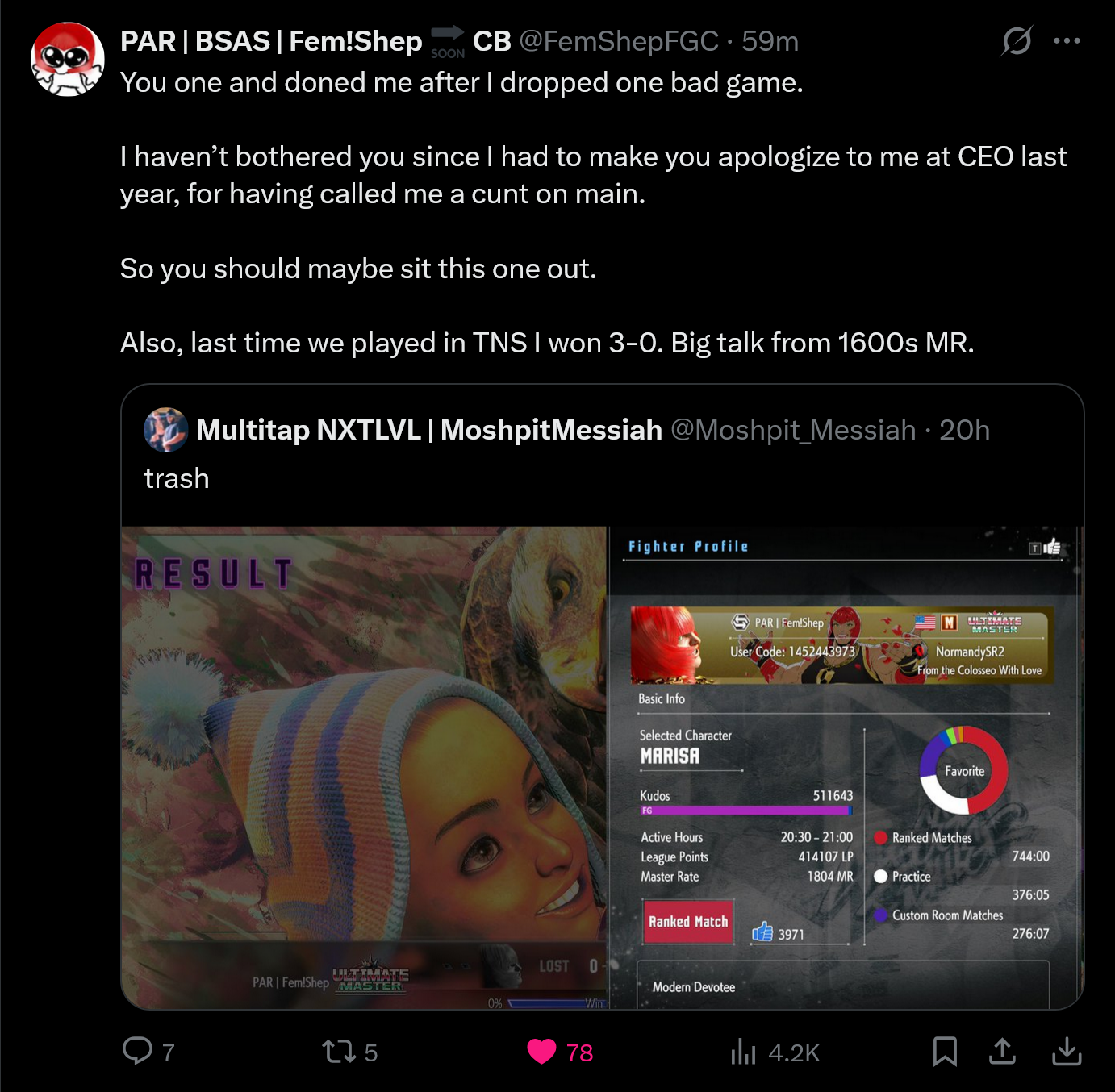 the bum is right though. plus this trogladike says the same stuff when they're streaming about all their opponents lol