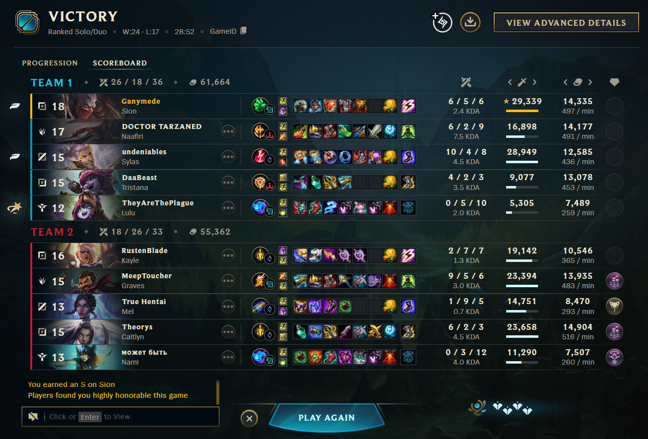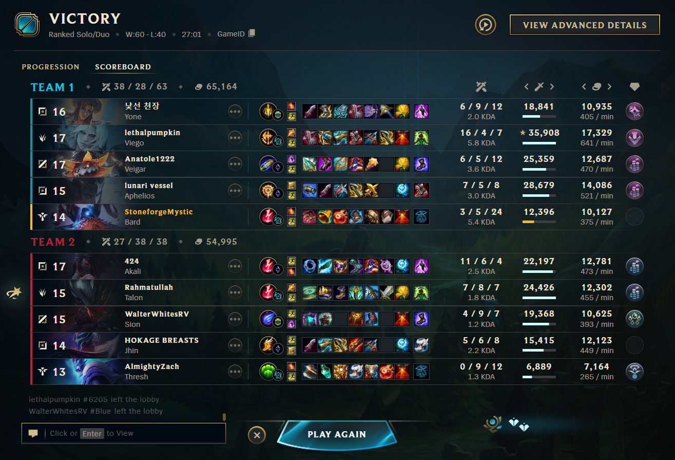 >autofilled>played engage support>against Gragas support>did my best to help my ADC>he gets relatively ahead of Jinx>rest of the team in shambles>still try to give the best plays I can to our ADC>we loseThanks Aegis of Valor. So you either pick mages or enchanters?
