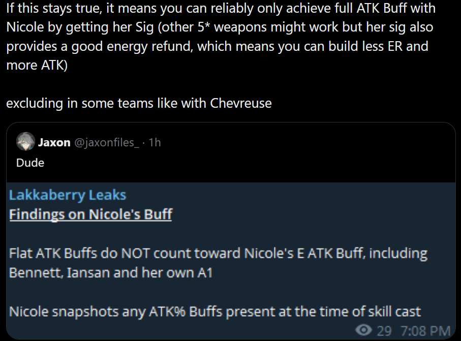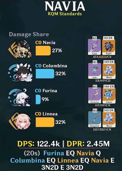 >>563620817because she pushed zibai over the other already absurdly overpowered lunar reaction teams by a stupid marginc0r0 flins/c0r0 ineffa/c0r0 bina/c6 sucrose is like 140k DPSc0r0 nefer/c0r0 lauma/c0r0 bina/c6 sucrose is like 150k DPSrealistic peak of mavuika at c0r0 is like 140-150k DPSc0r0 zibai/c0r0 linnea/c0r0 bina/c6 illuga is 200k DPS+, and the former two are using 3* weaponsc2r1 raiden on her best team prior to nod-krai was pushing maybe 100k DPS if you had really good artifacts, and that was memed/talked about as the best low cost investment for years(now her best team in nod-krai has her ditch everyone else to be wheelchaired, and you're arguably better off replacing her with aino anyways)also even for OW exploration she's too broken, eee just kills everything it hits in one go outside of actual bosses it's too dumb