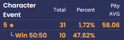 Anyone here with a 1+ year old or older wish history? Paimon.moe?What's the average rolls for a limited 5* for you? Just divide total rolls by the number of limited 5*s you got.