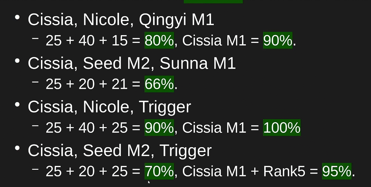 Qingyi Cisia Trigger might be fun.15 + 25 + 25 = 65% might be cool.If I like this enough, I might push Qingyi to C6.