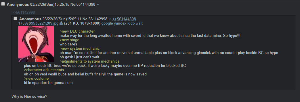 now niggas are copy pasting strive steam reviews and reacting to them with nier picrel because grub is dead