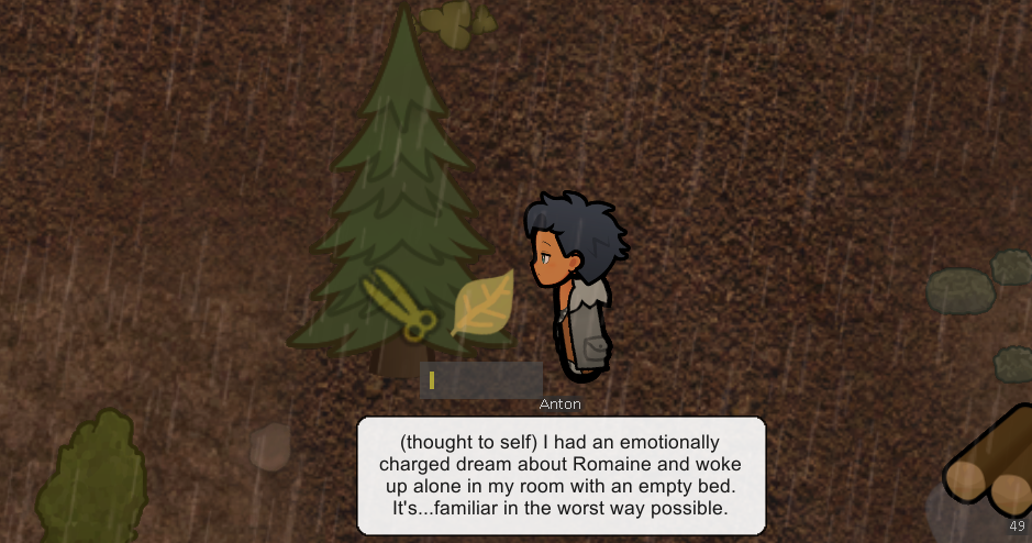 Some feral kid is running around the map eating berries and carcasses right before winter sets in. Probably going to attempt to tame this one so she doesn't die or exposure or get eaten by a predator in the coming days.