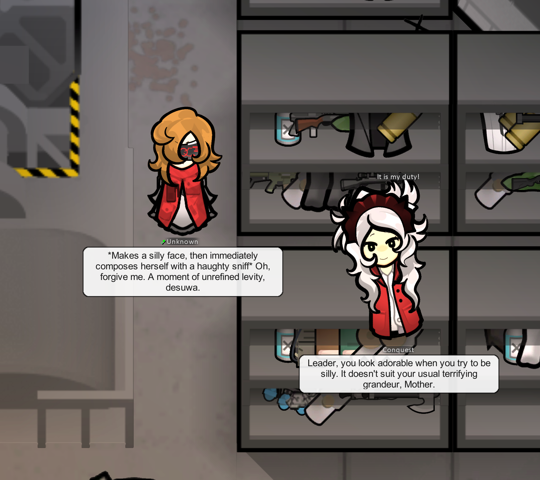 >>563671012lol I'll keep that in mind for the sequel.>>563671074there's nothing particularly unique about this run, though it's my first mechanitor playthrough.I'm just dollhousing and telling a story and cheating in my own wayUnless you mean the ARG stuff?>>563671963>big boobsNot cannon.