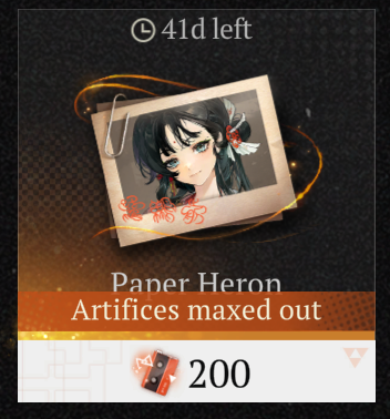What are our 3.4 spin plans?>Paper Heron>Cheng>Limited rerun banner with Jiu, Lucy and Anjo>LY>Euphoria banner (Willow notable)>Build a scam banner I'm just rolling p0 Paper Heron and using the free portrait to P5 my Tooth Fairy. Cheng I should be able to spook on the "get a 6* you dont own* in the next anni event since he'll be the only one I dont have. Since hes only good in LY team I dont really feel like I need him asap.