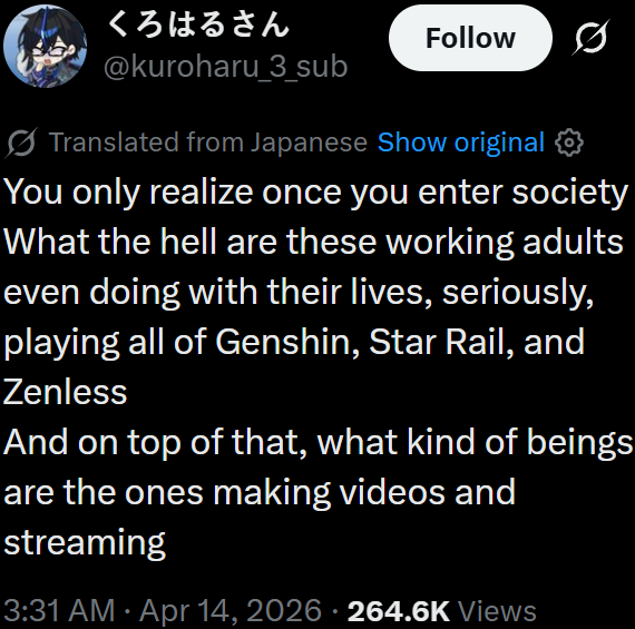Ugh when will Honkai Impact 3rd, Honkai: Star Rail, Zenless Zone Zero, Honkai: Nexus Anima, Petit Planet, Varsapura, Genesis players leave /gig/ alone