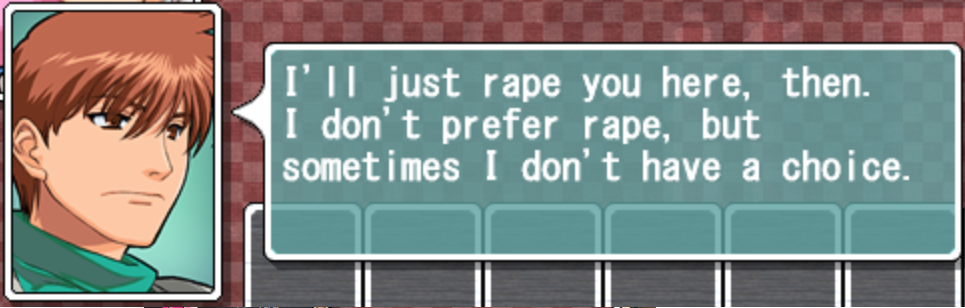 >>563749910>earlier in that very game>"I don't like it when they're too into it. It's better when they're crying and telling me to stop"A social chameleon, that Rance