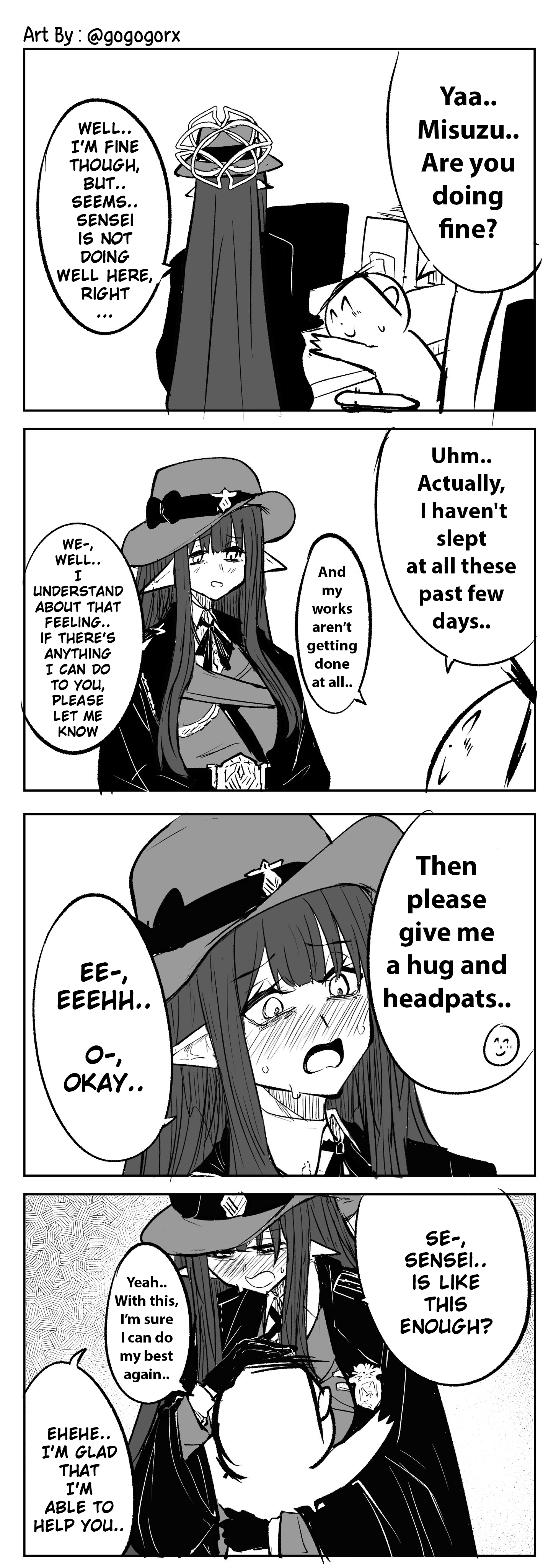 >>563703657in a timeline without 4chan, if we had a kivotos-chan, koharu should be the mod's mascot, m.aris the janny mascot, arona whacking the server with a wrench the 404 mascot