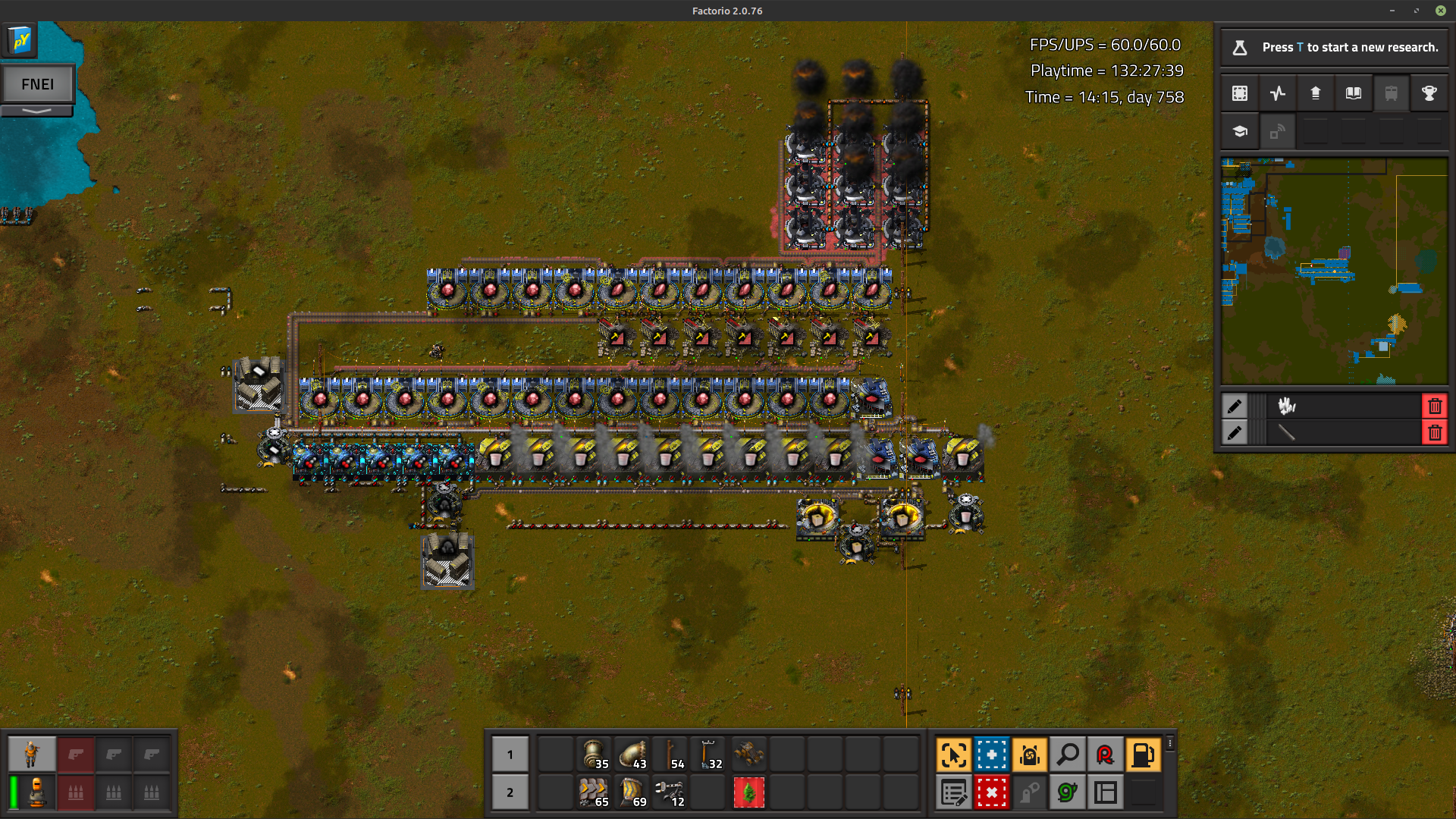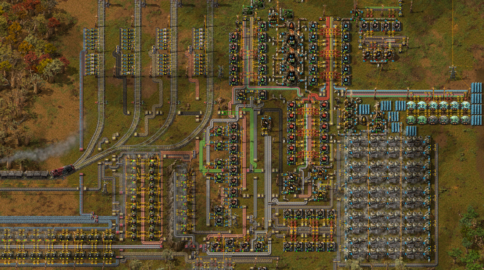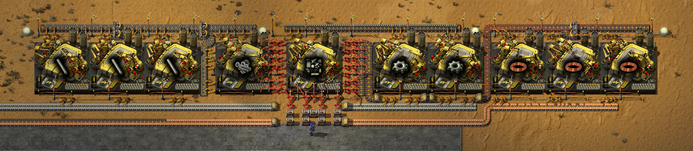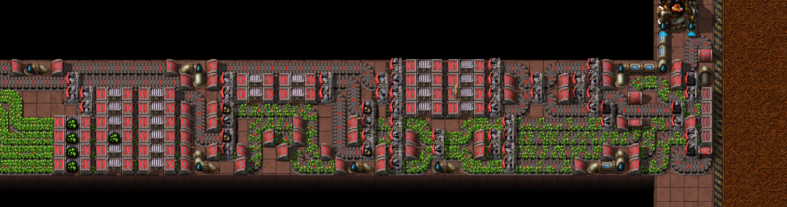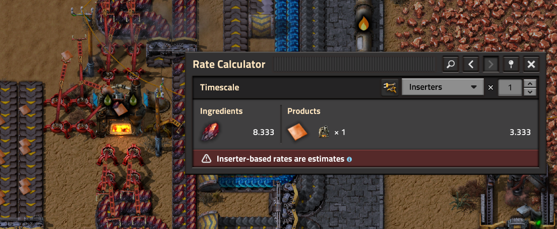 >>563986730shitpost aside here's my problem with that specific picturethere's 24 furnaces for each sidebut 24 steel furnaces can smelt 15 ore a second, which is half of a red beltthat entire thing is fed by a single half red belt of orethat means that at best it can give 15 ore, which means only half of it can work at any given time and that screenshot was taken only when the entire thing was backed up