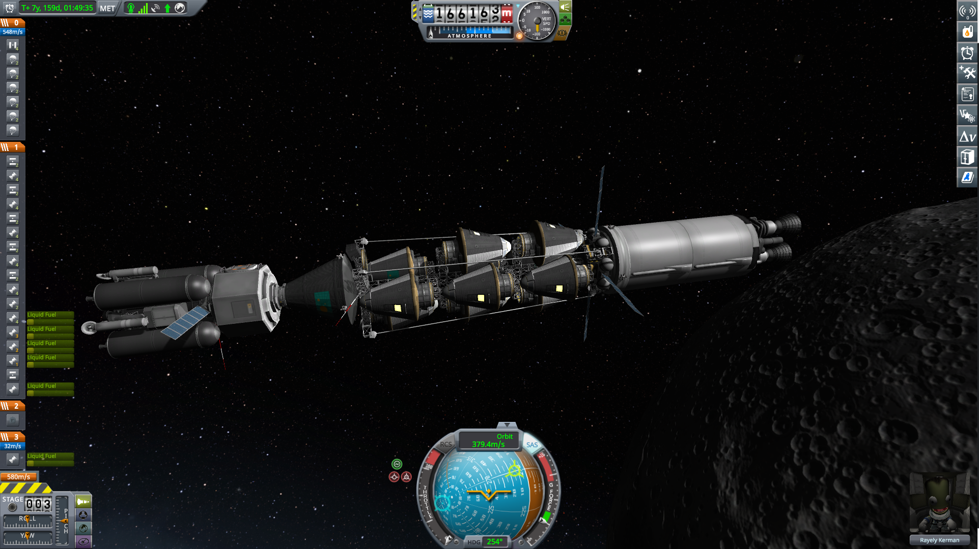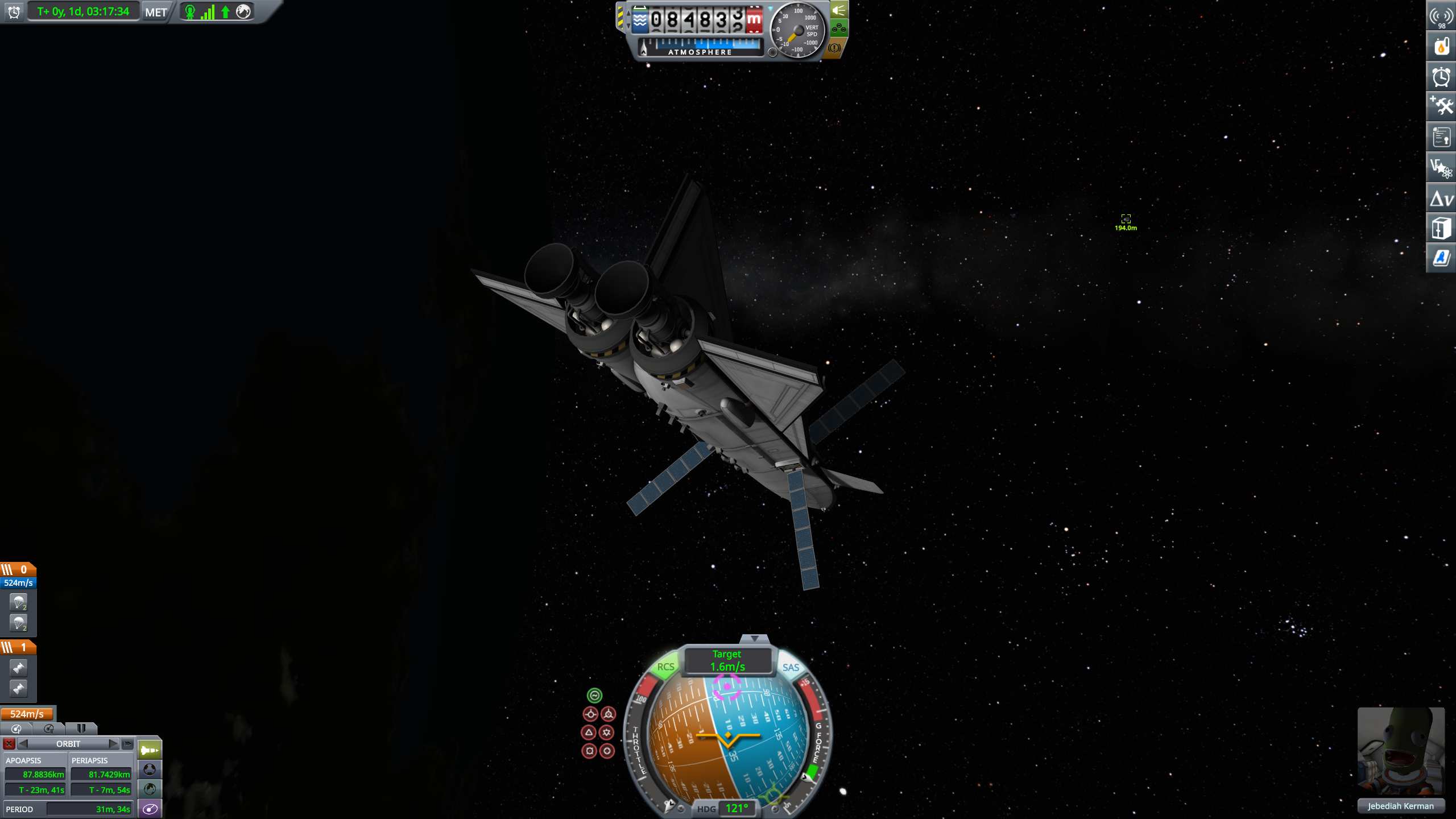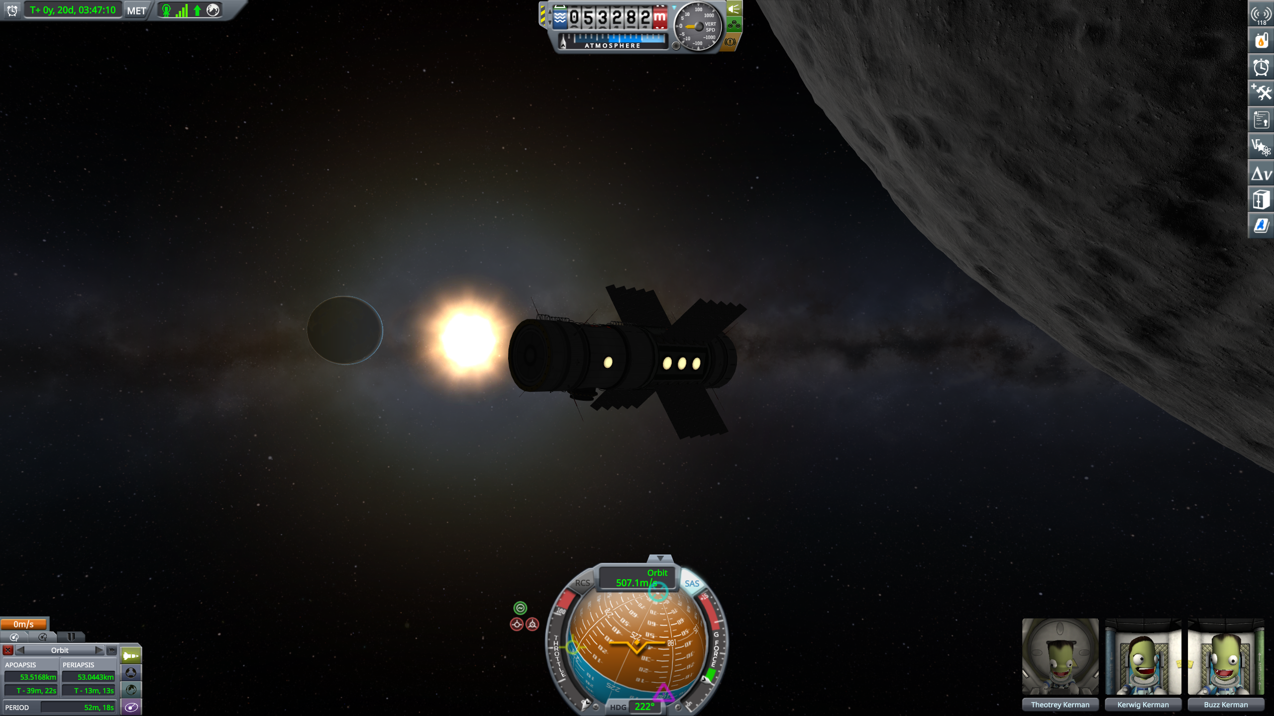 >launched and put first space station in Mun orbit>got the orbit down to less than 1km deviationyaaaay