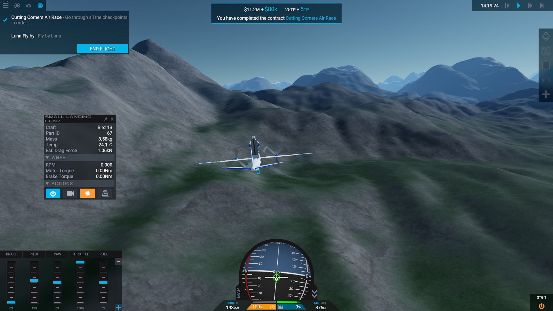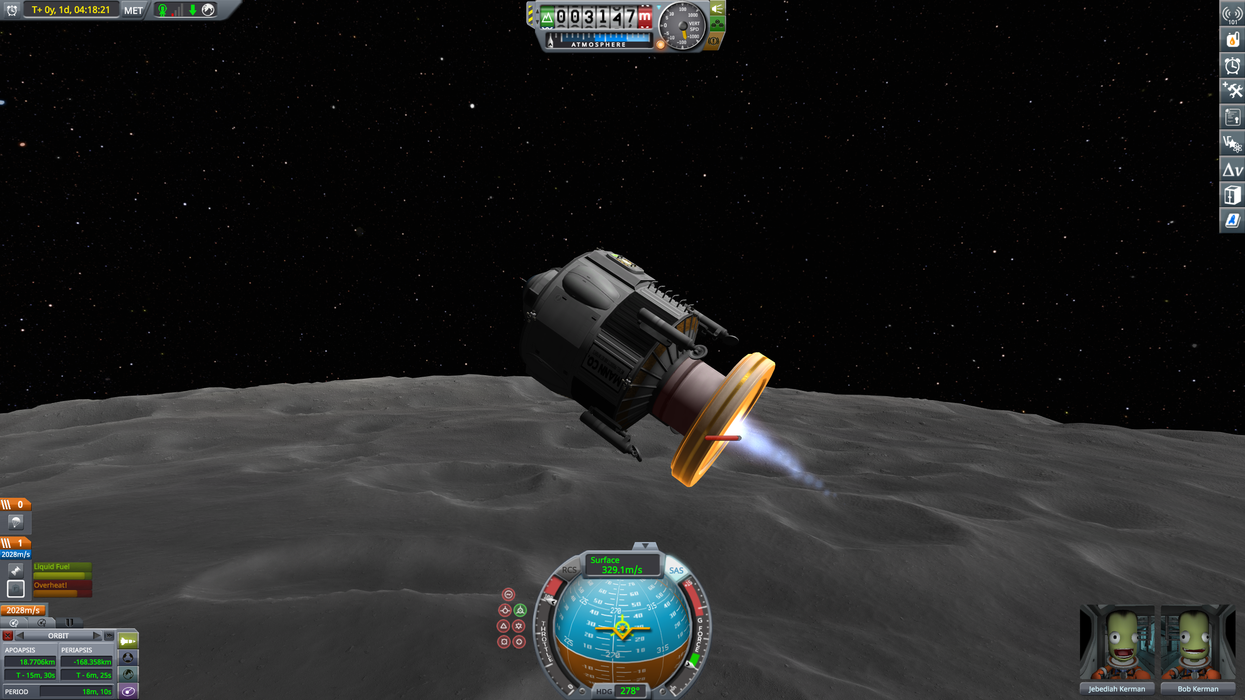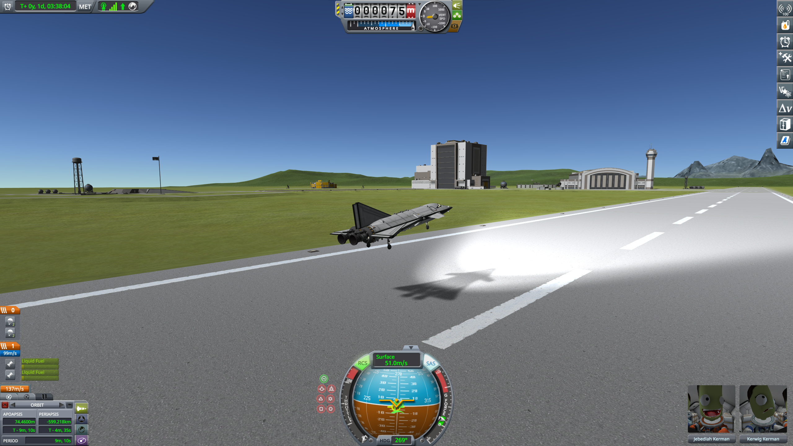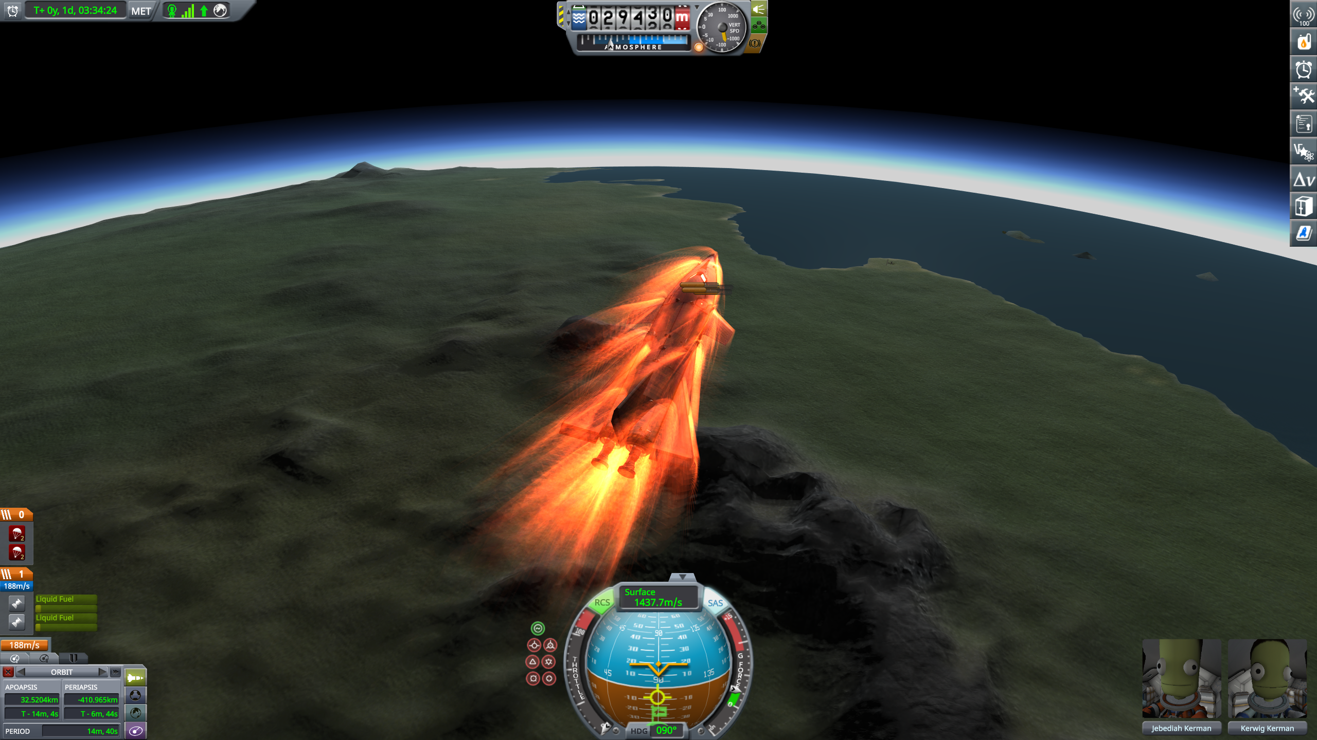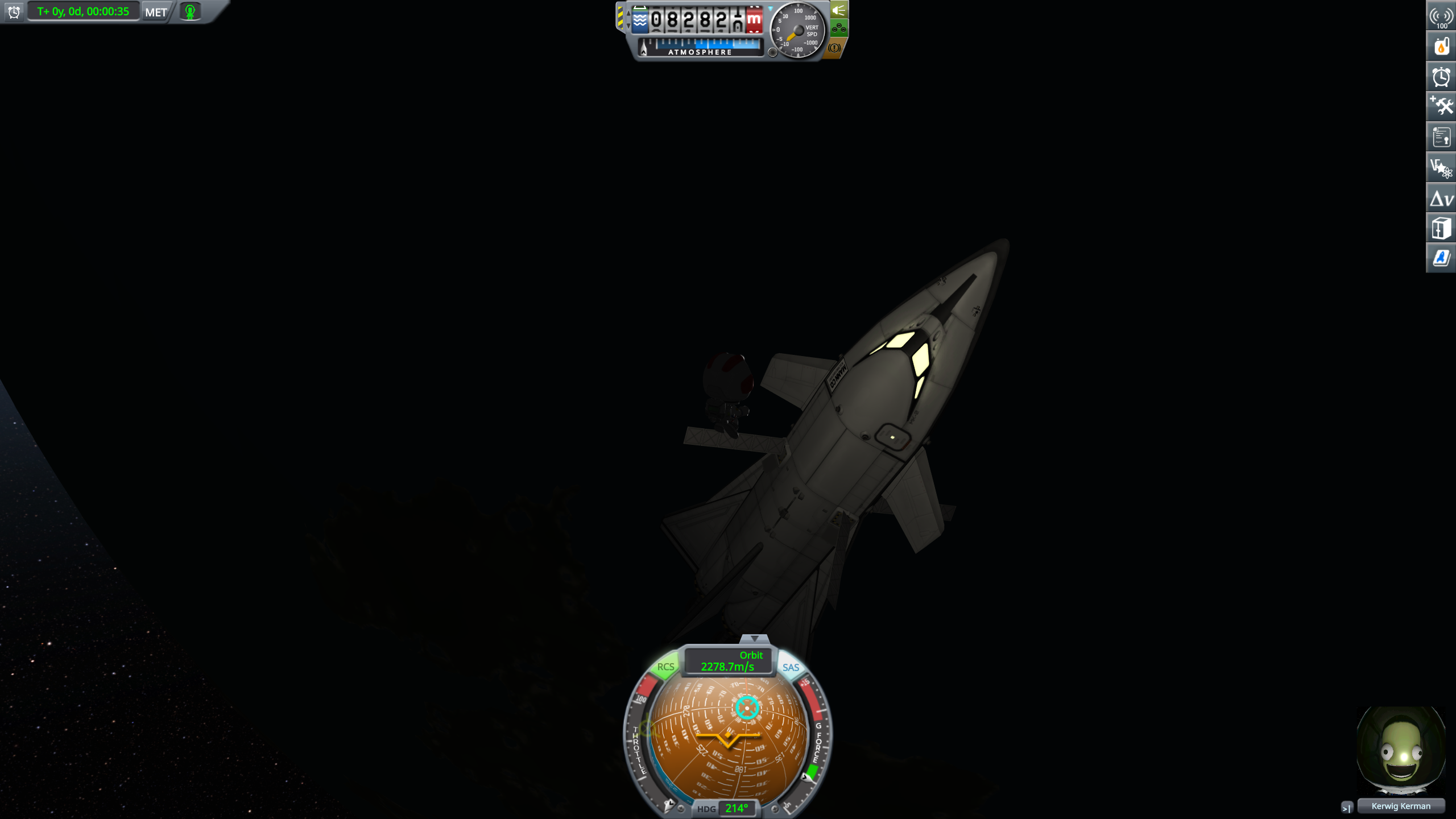 >brought Kerwig ALL the way homeI love this plane, even if its RCS failed me.This was almost a complete glide after reentry. Used a tiny amount of fuel near the end to make sure I had an appropriate rate of descent for landing.