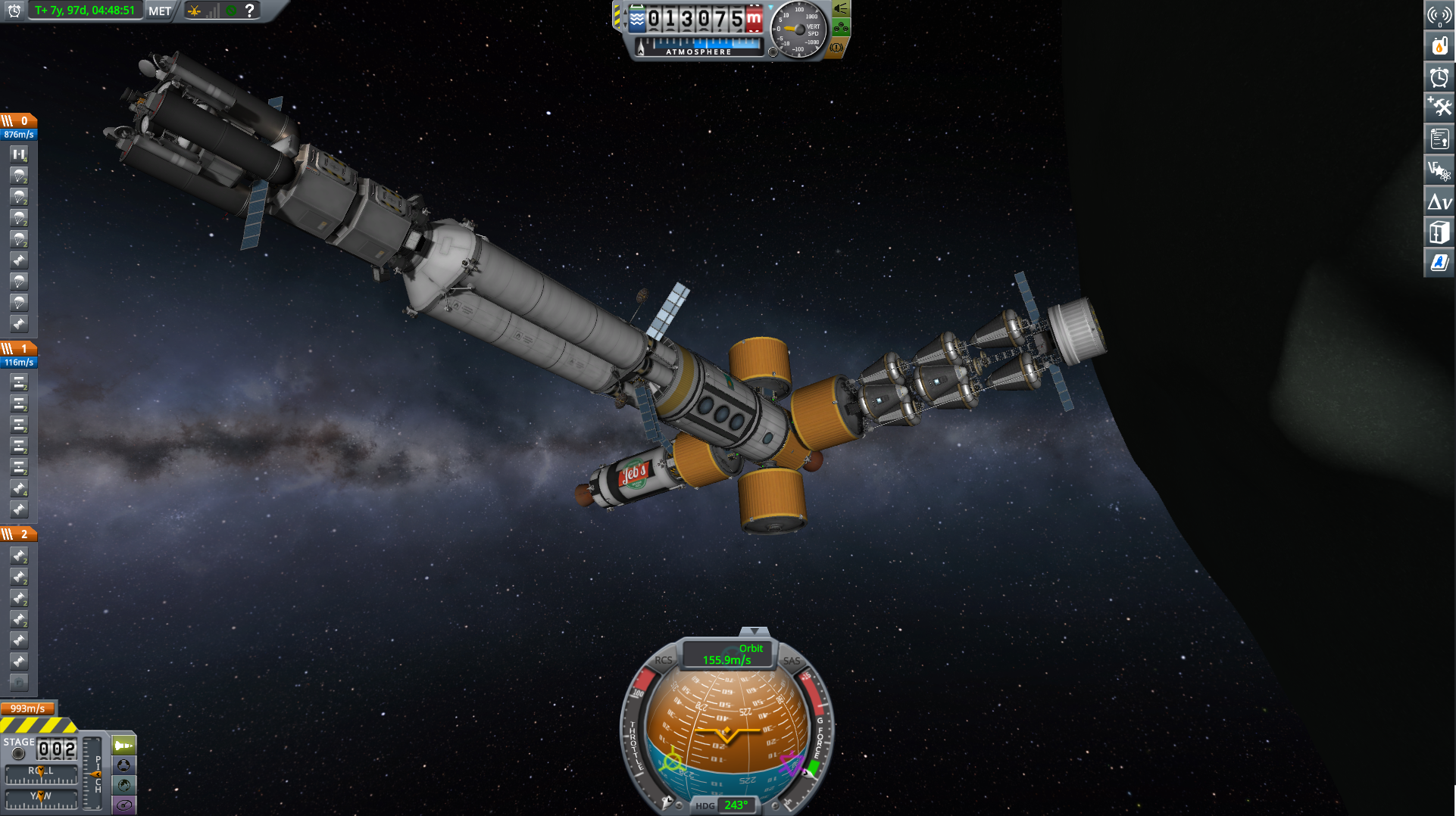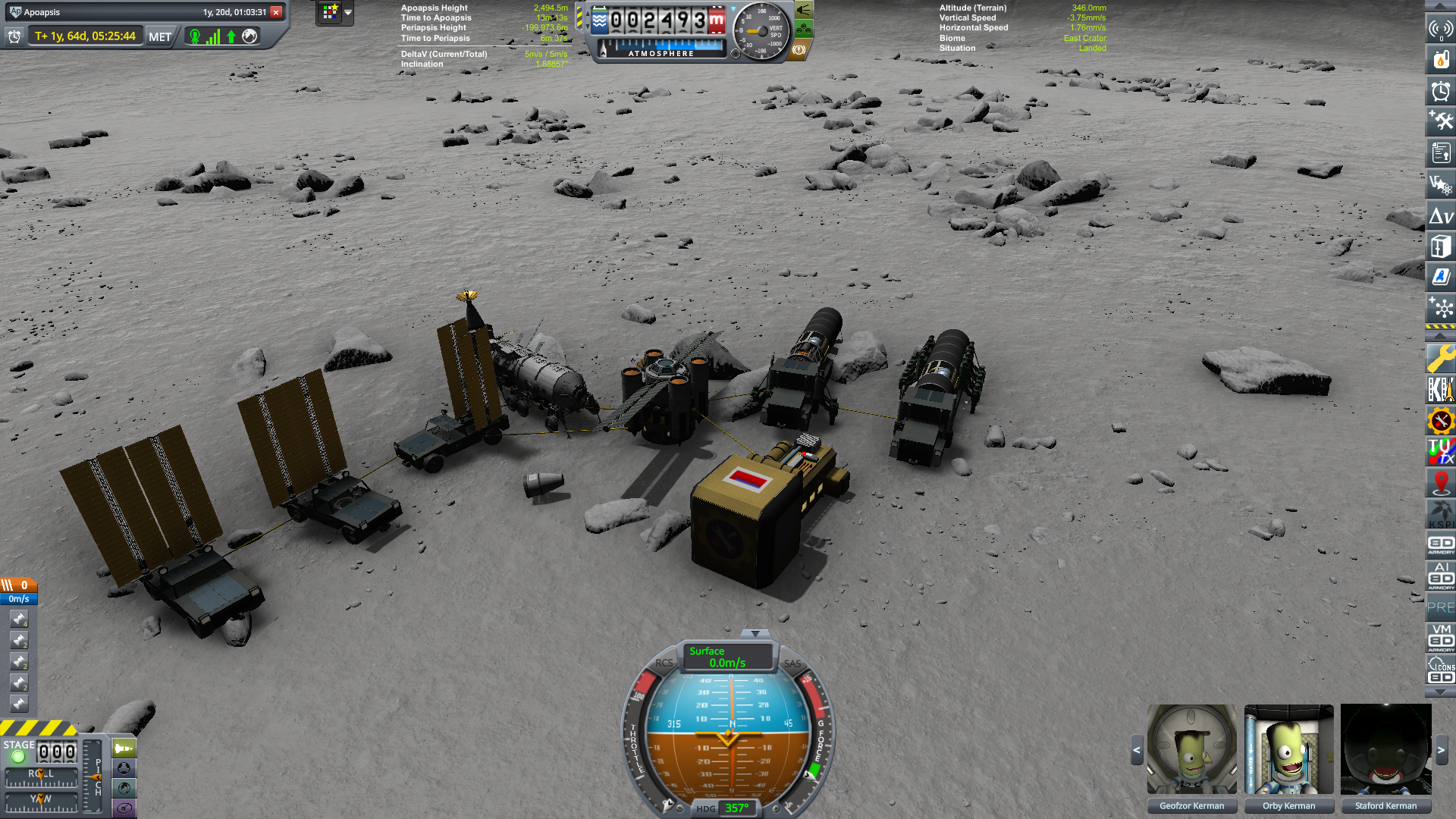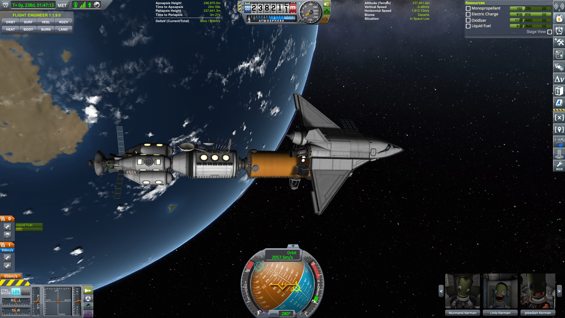 operation front door is complete. the old modules would be awkward to dock because of their stairs so im just going to scrap them and fly up new ones designed for docking. only real hiccup was i forgot to remove crew from the ship so now there are 4 of them up there when there should be 2, but thats not a huge deal