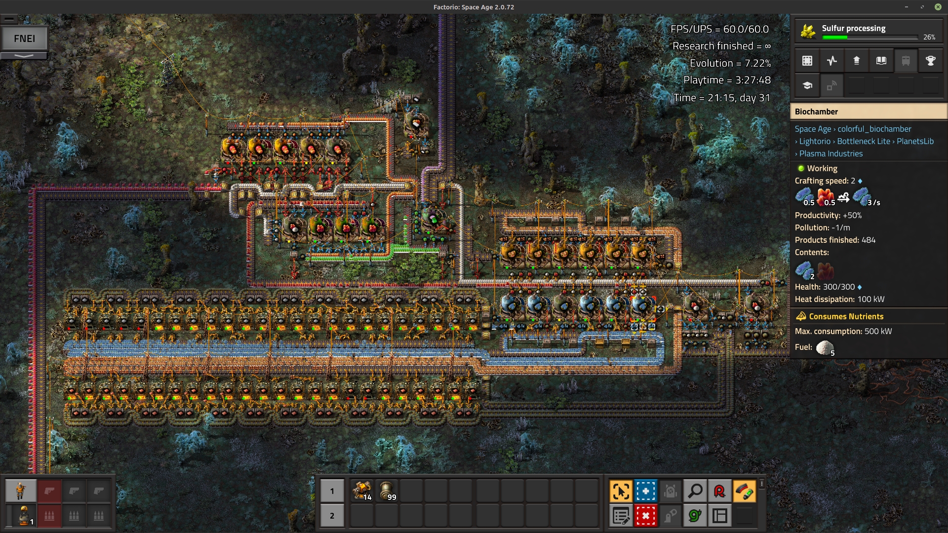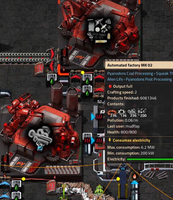 >>563878581Anywho, here's 15 sulfur/s consumed by 150 refined syngas/s made out of zinc overflow from rare earth oxides and a trickle of copper, to make ~200 sulfuric acid a second. This build also makes refined syngas for niobium extraction. To celebrate, I upgraded most of the huge pipe network in my base to niobium, and it was a pain in the ass but now I can build inbetween pipes without doing awkward bits and turns. It was fairly unnecessary and thus I haven't moved the areas I don't travel by car much, but it'll help a lot with hitting underground pipes with my car now.