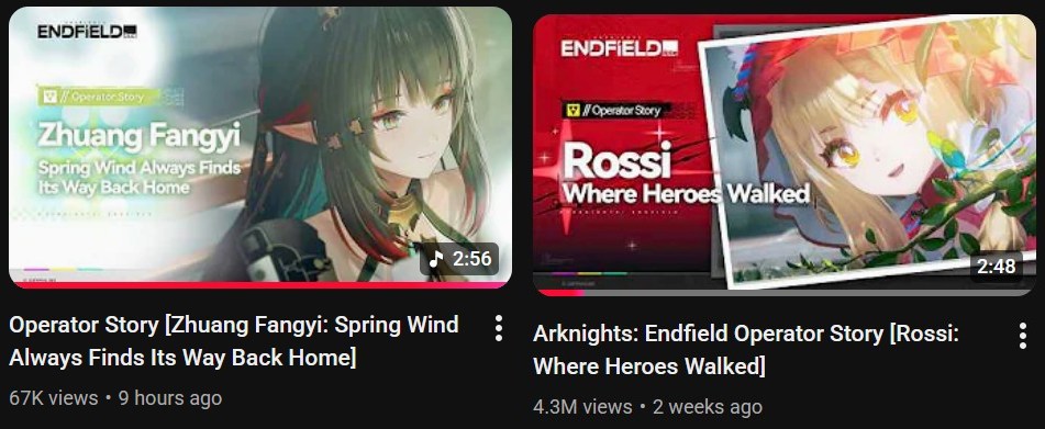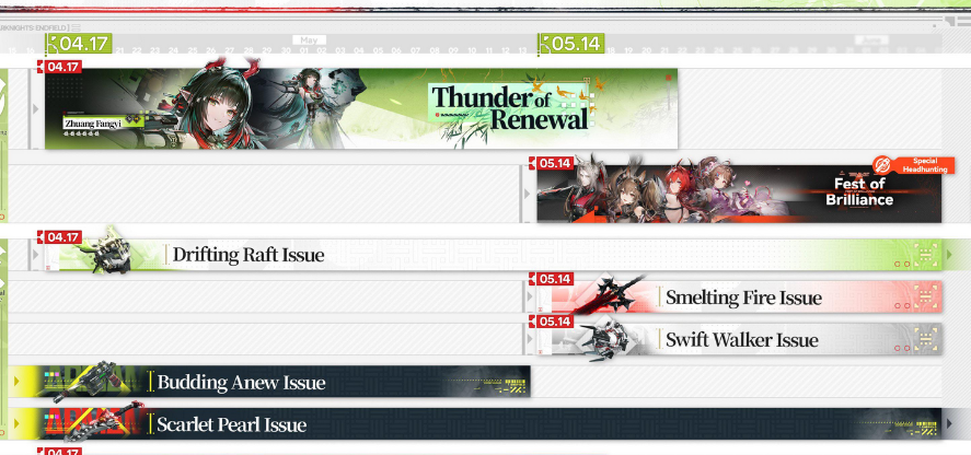 Previous: >>563678337>"At the Wake of Spring" Version 1.2 Preview Livestreamhttps://www.youtube.com/watch?v=tMFGowIF8eA>"At the Wake of Spring", Version 1.2 Trailerhttps://www.youtube.com/watch?v=MJ7FeHa3bYc >Official Websitehttps://endfield.gryphline.com/en-us>Official EN X (News)https://x.com/AKEndfield>DEV Comm (Developer Updates)https://endfield.gryphline.com/en-us/news/2662>Rossi PVshttps://www.youtube.com/watch?v=A5C7-5vi9SM https://www.youtube.com/watch?v=mwF4cJn6ekA>Rossi EPhttps://www.youtube.com/watch?v=0xecf5km_gYhttps://www.youtube.com/watch?v=cXch8i1Bxz8 https://www.youtube.com/watch?v=aq3U6cI24Ek >Zhuang Fangyi EPhttps://www.youtube.com/watch?v=dDLUMmQqxsI >Chartered Headhunting ScheduleMarch 29th to April 14th --- "Wolf Pearl", Rossi>SKPORT Daily Sign-inhttps://game.skport.com/endfield/sign-in?header=0&hg_media=skport&hg_link_campaign=tools>Twitch Dropshttps://endfield.gryphline.com/special/third-party-binding?channel=twitch>Reward CodesENDFIELDGIFTENDFIELD4PC>Wikishttps://wiki.skport.com/endfield (Official)https://perlica.moehttps://warfarin.wiki/enhttps://endfield.wiki.gg/>Blueprint Guideshttps://talospioneers.com/en>Stickershttps://drive.google.com/drive/folders/13KH3L6QPIKkVH7pBddv4uxwmwJsnOtklhttps://drive.google.com/drive/folders/1OuVtjv1k-9c3M6n7d4PX3CGG5bkwH04ahttps://drive.google.com/drive/folders/1AStB8bzFk3lSwMwczWPkFYCBrZe0vHOghttps://drive.google.com/drive/folders/1yS0lqUhxf8tBRtpDFfCU1y16IS2sSeF7>Fri/end/sSubmit your info, /end/min:https://forms.gle/Fo7BhZMKaKqiWyL19View other /end/mins:https://docs.google.com/spreadsheets/d/1YtxiDss0hgEQhLlZgpfzyGrJrzUcqDzOS9T6IH-BiVc/edit?usp=sharing