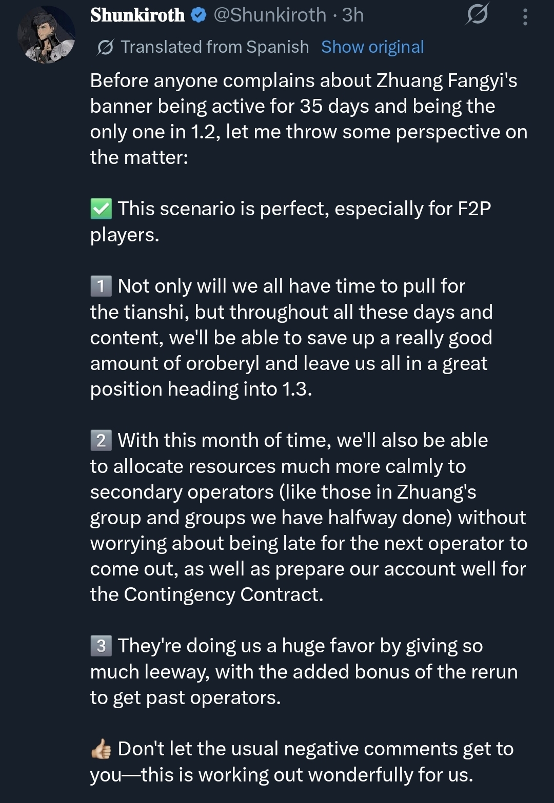 >>563734323? I've been loving the game since release. It's /end/ and EN players broadly speaking who've been ongoing party poopers, finding every possible reason to try and anti-shill others