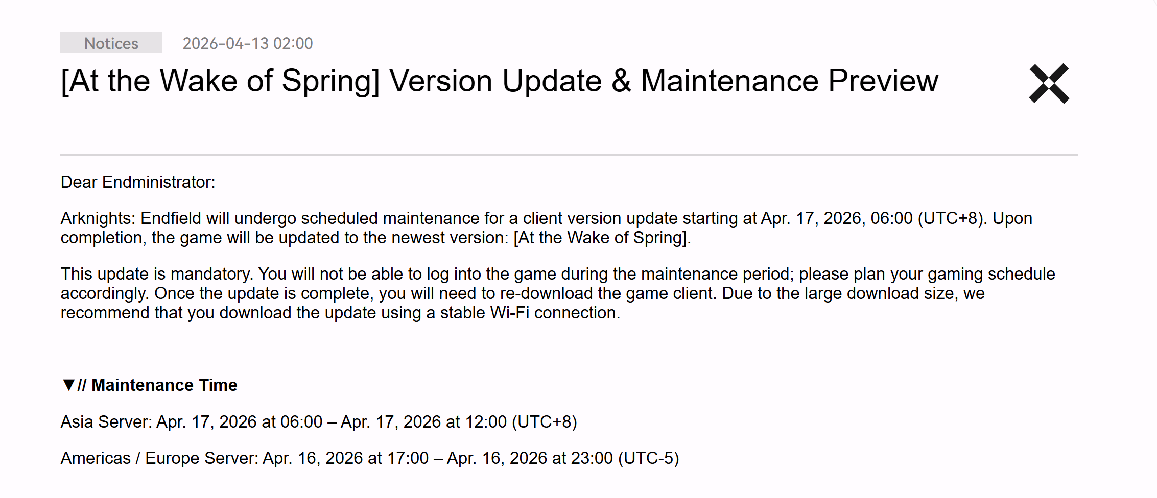 Previous: >>563678337>"At the Wake of Spring" Version 1.2 Preview Livestreamhttps://www.youtube.com/watch?v=tMFGowIF8eA>"At the Wake of Spring", Version 1.2 Trailerhttps://www.youtube.com/watch?v=MJ7FeHa3bYc >Official Websitehttps://endfield.gryphline.com/en-us>Official EN X (News)https://x.com/AKEndfield>DEV Comm (Developer Updates)https://endfield.gryphline.com/en-us/news/2662>Rossi PVshttps://www.youtube.com/watch?v=A5C7-5vi9SM https://www.youtube.com/watch?v=mwF4cJn6ekA>Rossi EPhttps://www.youtube.com/watch?v=0xecf5km_gYhttps://www.youtube.com/watch?v=cXch8i1Bxz8 https://www.youtube.com/watch?v=aq3U6cI24Ek >Zhuang Fangyi EPhttps://www.youtube.com/watch?v=dDLUMmQqxsI >Chartered Headhunting ScheduleMarch 29th to April 14th --- "Wolf Pearl", Rossi>SKPORT Daily Sign-inhttps://game.skport.com/endfield/sign-in?header=0&hg_media=skport&hg_link_campaign=tools>Twitch Dropshttps://endfield.gryphline.com/special/third-party-binding?channel=twitch>Reward CodesENDFIELDGIFTENDFIELD4PC>Wikishttps://wiki.skport.com/endfield (Official)https://perlica.moehttps://warfarin.wiki/enhttps://endfield.wiki.gg/>Blueprint Guideshttps://talospioneers.com/en>Stickershttps://drive.google.com/drive/folders/13KH3L6QPIKkVH7pBddv4uxwmwJsnOtklhttps://drive.google.com/drive/folders/1OuVtjv1k-9c3M6n7d4PX3CGG5bkwH04ahttps://drive.google.com/drive/folders/1AStB8bzFk3lSwMwczWPkFYCBrZe0vHOghttps://drive.google.com/drive/folders/1yS0lqUhxf8tBRtpDFfCU1y16IS2sSeF7>Fri/end/sSubmit your info, /end/min:https://forms.gle/Fo7BhZMKaKqiWyL19View other /end/mins:https://docs.google.com/spreadsheets/d/1YtxiDss0hgEQhLlZgpfzyGrJrzUcqDzOS9T6IH-BiVc/edit?usp=sharing