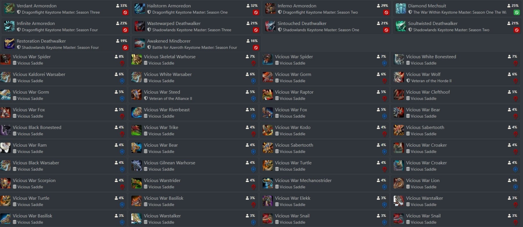 >>563722596you can get elite weapons before the vicious mount/saddles too. it's amazing that they're making the m+ saddles so high requirement when pvp (outside of gladiator mount) is fucking free. like 10 solo blitz wins for 1800