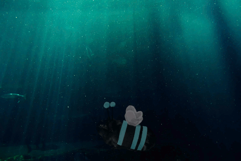 Poster above floats and sputters.