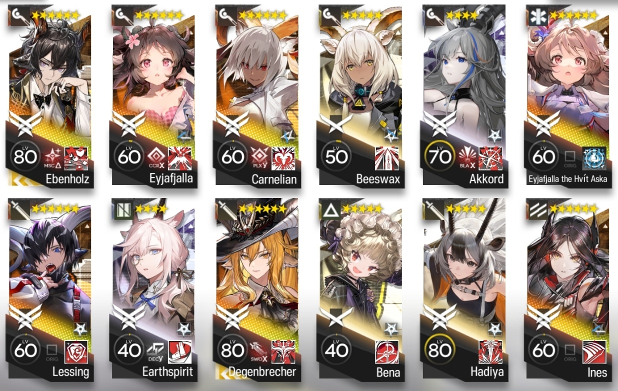 Previous thread: >>563701940Happy birthday Indra and Tuye!>CURRENT, FUTURE GLOBAL/JP/KR CONTENT:[4/10-4/24][Standard]6* Sniper Pozemka, 6* Defender Jessica the Liberated (Shop), 5* Sniper Melanite, 5* Medic Record Keeper, 5* Supporter Quercus (Shop)[4/1-4/22]Icebreaker Games #2 - Chiave skin[4/1-4/15][Joint Operation]6* Sniper Narantuya, 6* Guard Degenbrecher, 6* Sniper Lemuen, 6* Caster Ho'olheyak, 5* Vanguard Mitm, 5* Specialist Wulfenite, 5* Supporter Grain Buds, 5* Sniper Lunacub, 5* Caster Santalla, 5* Sniper Greyy the Lightningbearer[4/14-5/5]Retracing Our Steps - 6* Supporter Astgenne the Lightchaser, 5* Guard Hadiya, 4* Caster Akkord[4/14-4/28][A Shared Oath of Guardianship]6* Vanguard SilverAsh the Reignfrost, 6* Caster Pramanix the Prerita, 5* Sniper Snow Hunter[4/14-4/28][Log-in]Estelle skin[4/14-5/12][EPOQUE & Test]Vina Victoria, Civilight Eterna, Ho'olheyak; Lappland the Decadenza[4/14-5/12]Mass skin reselling>CURRENT, FUTURE CN CONTENT:[4/9-4/23][Standard]6* Defender Penance, 6* Guard Mlynar (Shop), 5* Caster Tecno, 5* Supporter Sand Reckoner, 5* Vanguard Fang the Fire-Sharpened (Shop)[4/7-4/21]People, A People - 5* Supporter Botani[4/7-4/21][Rage of the Many]6* Zima the Raging Tide, 5* Medic Ukusik, 5* Vanguard Mitm[4/7-4/21][Ambiance Synesthesia]Nymph, Surtr[TBA][Ambiance Synesthesia]Lemuen, Necrass, Saria>/akg/ website:akgcc.github.io>AK EN Database:puppiizsunniiz.github.io/AN-EN-Tags/akhrchars.html>More valuable resources:rentry.org/akg_resources>/akg/ merch guiderentry.co/akg_merch