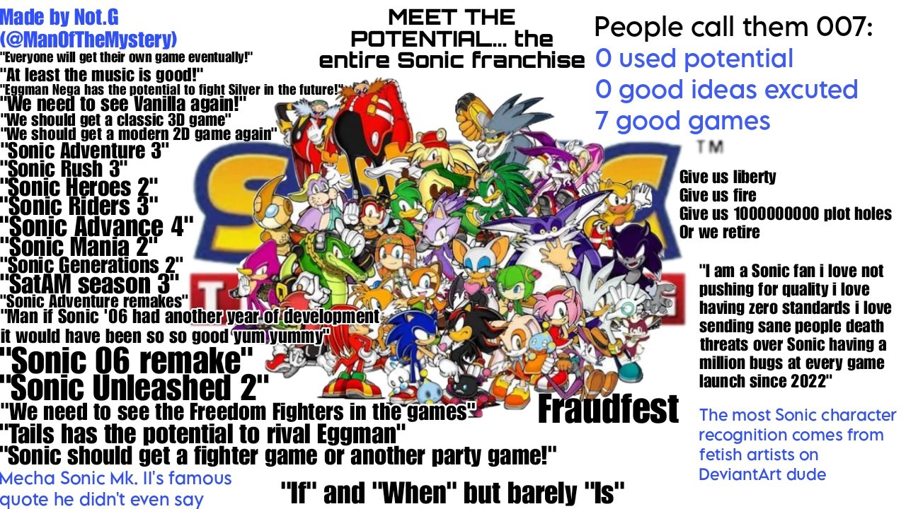 >>563747071And that's why Sonic fans always groan when a new character is introduced and thinks they "take away from older characters" just because Sega is unable to treat all the characters equally well