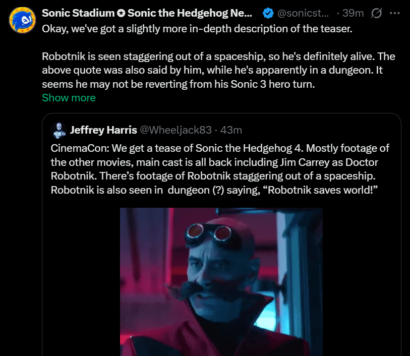 Welcome to Sonic the Hedgehog General! Here we discuss all things Sonic!/sthg/ #9242 - Spiky with an handgun Edition==NEWS==>Sonic the Hedgehog's 35th anniversaryhttps://www.sega.com/sonic-the-hedgehog?tab=35th-anniversary>Sonic the Hedgehog 4 to release on March 19, 2027https://x.com/SonicMovie==Comic Release Dates==Sonic the Hedgehog #86 - 22 April 2026DC x Sonic the Hedgehog: Metal Legion #1 - 06 May 2026DC x Sonic the Hedgehog: Metal Legion #2 - 03 June 2026Sonic the Hedgehog #87 - 10 June 2026Sonic the Hedgehog #88 - 24 June 2026Sonic the Hedgehog x Godzilla #1 - Summer 2026Sonic the Hedgehog: 35th Anniversary Special - 15 December 2026==GENERAL INTEREST LINKS==https://rentry.org/sthglinks>Milestone pastebin:https://pastebin.com/LJCfZhY4>Sonic Game/Mod Recommendation Spreadsheet:https://rentry.org/sthglinks#sonic-gamemod-recommendation-spreadsheet>Perfect System Collection:https://rentry.org/sthglinks#perfect-system-collection>Sonic comic scans:https://rentry.org/sthglinks#comics>Sonic shows:https://rentry.org/sthglinks#shows>SAGEhttps://sagexpo.org/>SHChttps://shc.zone/>#10000 Projecthttps://pastebin.com/Fb8Bt4r>/sthg/ booru:https://sthg.booru.org/>/sthg/ CyTube:https://cytube/r/sthg>/sthg/ Pixel World:https://ourworldofpixels.com/sthgPrevious Zone >>563696127
