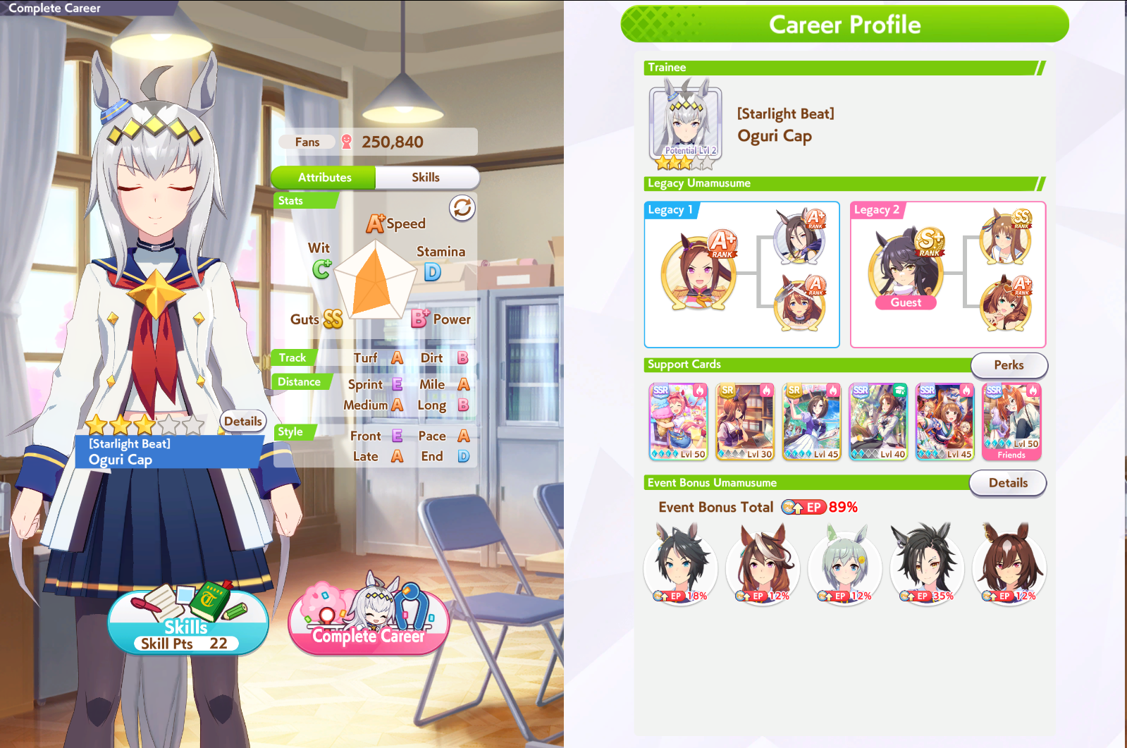>>563749576Use the same deck but replace Ikuno SSR with Nice Nature SSRUse power + speed parents