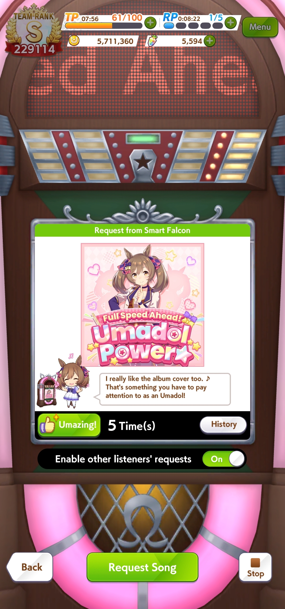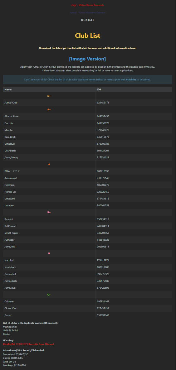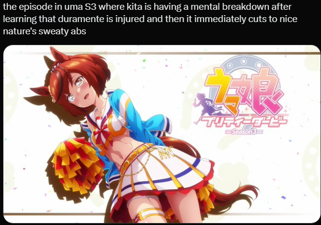 Previous: >>563726834>Global Game NewsLink your account to Cygames iDCurrent Scenario: Make A New Track aka "Trackblazer"Current Rate Up Trainee: Nishino Flower (3*), Ballroom Seiun Sky (3*), Ballroom Fuji Kiseki (3*)Current Rate Up Support Cards: SSR Daiwa Scarlet (Power), SSR Symboli Rudolf (STA), SSR Sirius Symboli (WIT), SR Sweep Tosho (Wit)Current CM: Aries Cup - Nakayama Turf 2000mCurrent Event: Ligne Droite Story Event>Schedule04/12 - Nishino Flower (3*), Daiwa Scarlet (SSR), Sweepy (SR)04/20 - Yaeno Muteki (3*), Ines Fujin (SSR), Twin Turbo (SSR)04/20 - Aries Cup - Medium/Right/Spring/Firm/200004/26 - Golshi Week Celebration04/26 - Cheerleader Nice Nature (3*), Cheerleader King Halo (3*), Bamboo Memory (SSR), Seeking the Pearl (SSR)04/26 - Tracen Cheer Squad Story Event04/30 - Ines Fujin (3*), MR. C.B. (SSR), Tokai Teio (SR)https://pages.snep.pw/uma/anni-skill-changes>JP Game NewsCurrent Rate Up: Lucky Lilac (3*), SSR Aston Machan, SR Hishi AmazonNew Scenario "Beyond Dreams" releasedTimeline: https://uma.moe/timelineCygames Webstore: https://webstore.cygames.com/en/umamusume_en>Thread Clubshttps://rentry.co/umaglobalclublistYou must be E3 (20k points) to join a circle. Apply with /uma/ or /vg/ in your profile or post ID in the thread.>All Guides & Resourceshttps://rentry.org/uma26Game databasehttps://gametora.com/umamusume (Click the gear to switch between JP / global server info)A basic guide for newfagshttps://rentry.org/umaglobalFind networks if your region is blocked from the game or clienthttps://www.umavpn.topSeiyuu & Concertshttps://rentry.org/umstUmamusume Birthday Calendarhttps://ウマ娘.攻略.tools/events/birthdayUma Texthttps://umareader.idsmile.xyzCustom Stickershttps://schizo.farm/resources/stickers