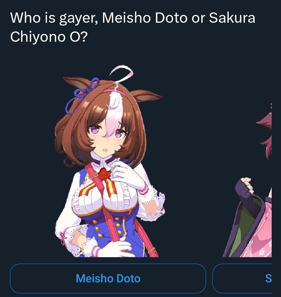 >>563748838>global uma>vs non-global umaI don't even dislike her, but that's kind of expected. I don't think I even have any pictures of her saved to post myself.