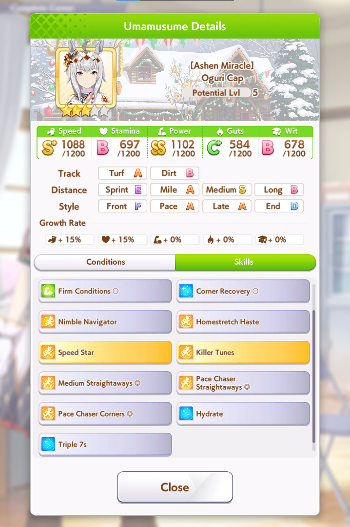 I'm getting just over 1000 carnival points per race, is that decent? How big of a boost are we talking from chain training the skill for a better uma?