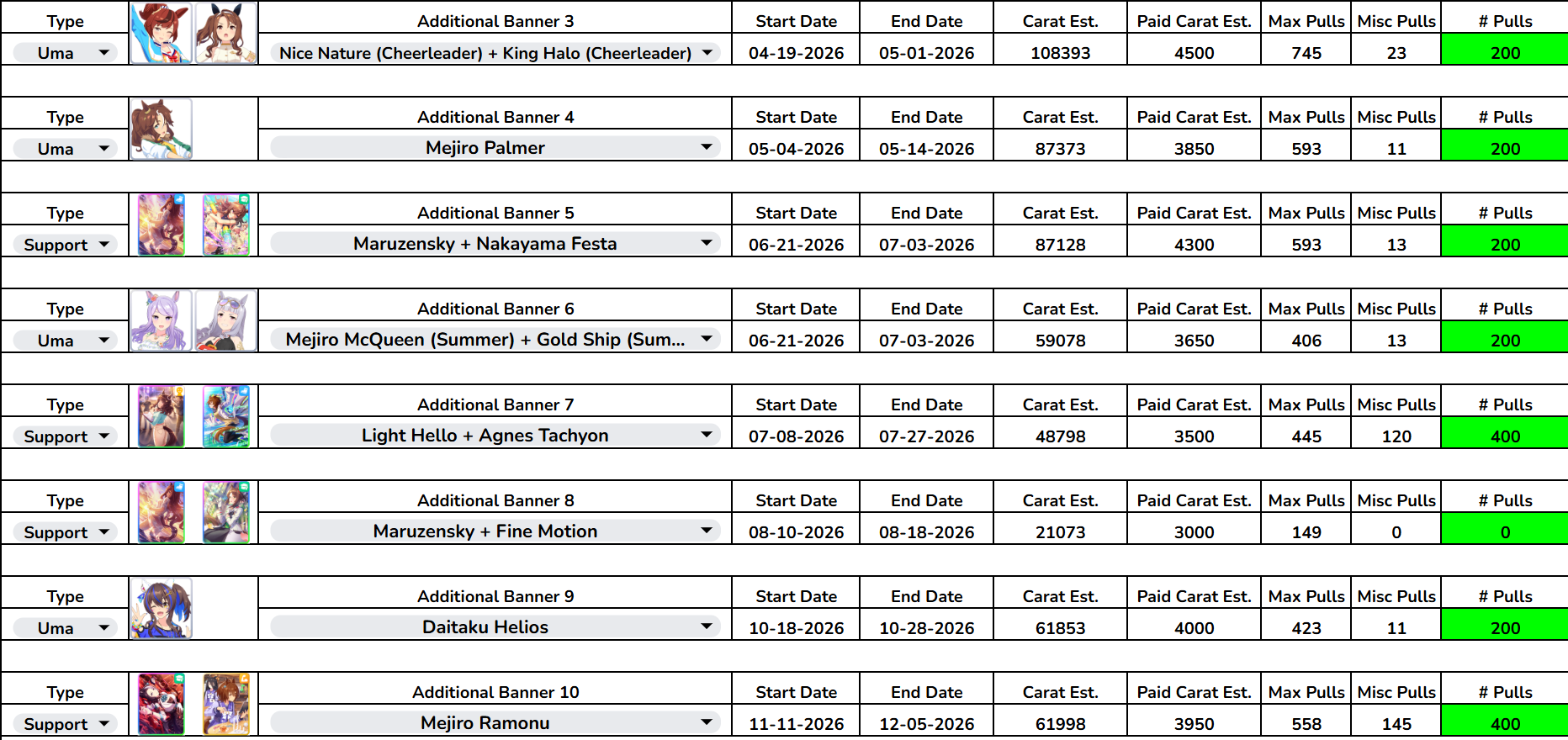 since we posted sorters last thread, post your uma pull plans now
