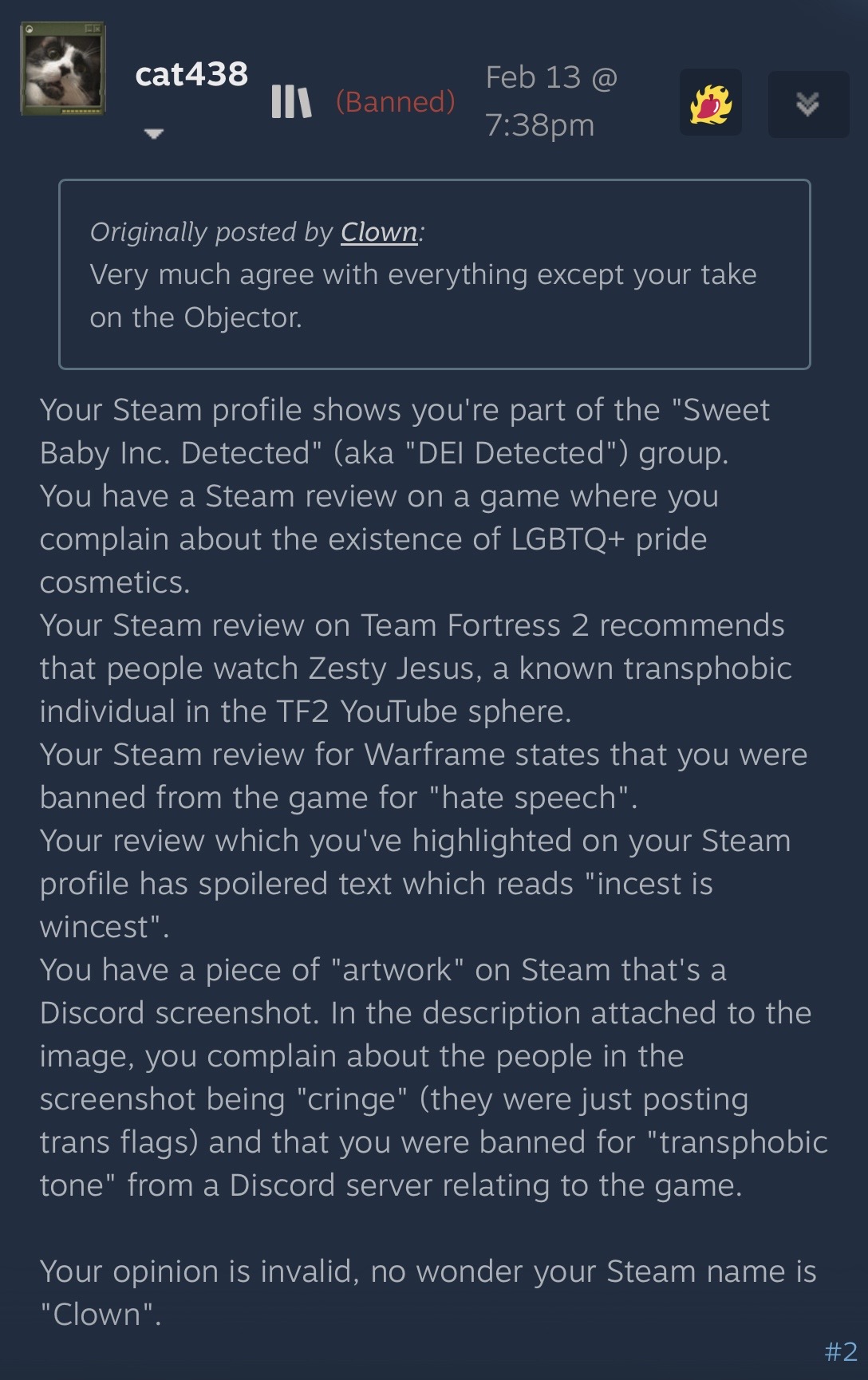 GIVE STONE COLD THE MICROPHONECOMIN' IN HERE>WHAT?I SAID I WAS COMIN' IN HERE>WHAT?TO TALK ABOUT SOME TF2>WHAT?SOME HAT FORTRESS>WHAT?SOME HEAVY WEAPONS GUY>WHAT?SOME PEOPLE SAY I LOOK LIKE HIM>WHAT?BUT I CAME IN HERE>WHAT?I SAID I CAME IN HERE>WHAT?MARCHED ON INTO THIS THREAD>WHAT?AND STONE COLD DIDNT SEE NO TF2>WHAT?HE DIDNT SEE NO GAMEPLAY DISCUSSION>WHAT?YOU KNOW WHAT I SAW?>WHAT?I SAW SERVER DRAMA>WHAT?I SAW WEEABOO SHIT>WHAT?I SAW ZOOMERS BITCHIN>WHAT?I SAW NEWFAGS WHINING>WHAT?AMD I SAW LOLICON SHIT>WHAT?I SAID I SAW LOLICON SHIT>WHAT?ZESTY JESUS>WHAT?CRYIN ON CAMERA>WHAT?CRYIN ABOUT HATS>WHAT?AND STONE COLD DIDNT WANNA SEE NONE OF THAT>WHAT?SO HE TOOK HIS MOUSE CURSOR>WHAT?AND HE CLICKED ON THAT THERE REPLY BOX>WHAT?AND HE DRANK A BEER>WHAT?AND HE WROTE THIS REPLY>WHAT?I SAID I WROTE THIS REPLY>WHAT?CALLING YOU A FAGGOT>WHAT?AND A NIGGER>WHAT?AND A SHITPOSTER>WHAT?AND YOU'RE PARASOCIAL>WHAT?I SAID YOU'RE A PARASOCIAL BITCH>WHAT?WHO NEEDS TO PLAY SOME VIDYA GAEMS>WHAT?AND QUIT WORRYING ABOUT ZESTY JESUS>WHAT?WHO DONT EVEN DRINK>WHAT?OR THE LOLICONS>WHAT?OR THE DAMN SERVER DRAMA>WHAT?AND GET YOUR ASS IN TF2>WHAT?I SAID GET YOUR ASS IN TF2>WHAT?SO STONE COLD CAN WHIP YOUR ASS AS HEAVY WEAPONS GUY>WHAT?REV UP MY MINIGUN>WHAT?SPRAY YA DOWN WITH BULLETS>WHAT?FEED HIM A SANDWICH>WHAT?DRINK MYSELF A BEER WHILE I DO IT>WHAT?AND ANOTHER BEER>WHAT?AND TWO MORE BEERS>WHAT?OH HELL YEAH